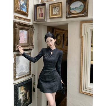 FA54326# 新中式性感改良旗袍裙女高级感气质褶皱收腰显瘦复古国风连衣裙 服裝批發女裝批發服飾貨源