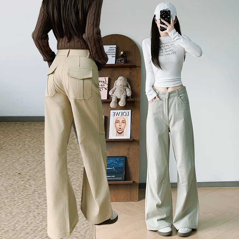 FA54431# 纯棉工装裤春款阔腿卫裤女工装新款垂感高腰休闲直筒裤子 服裝批發女裝批發服飾貨源