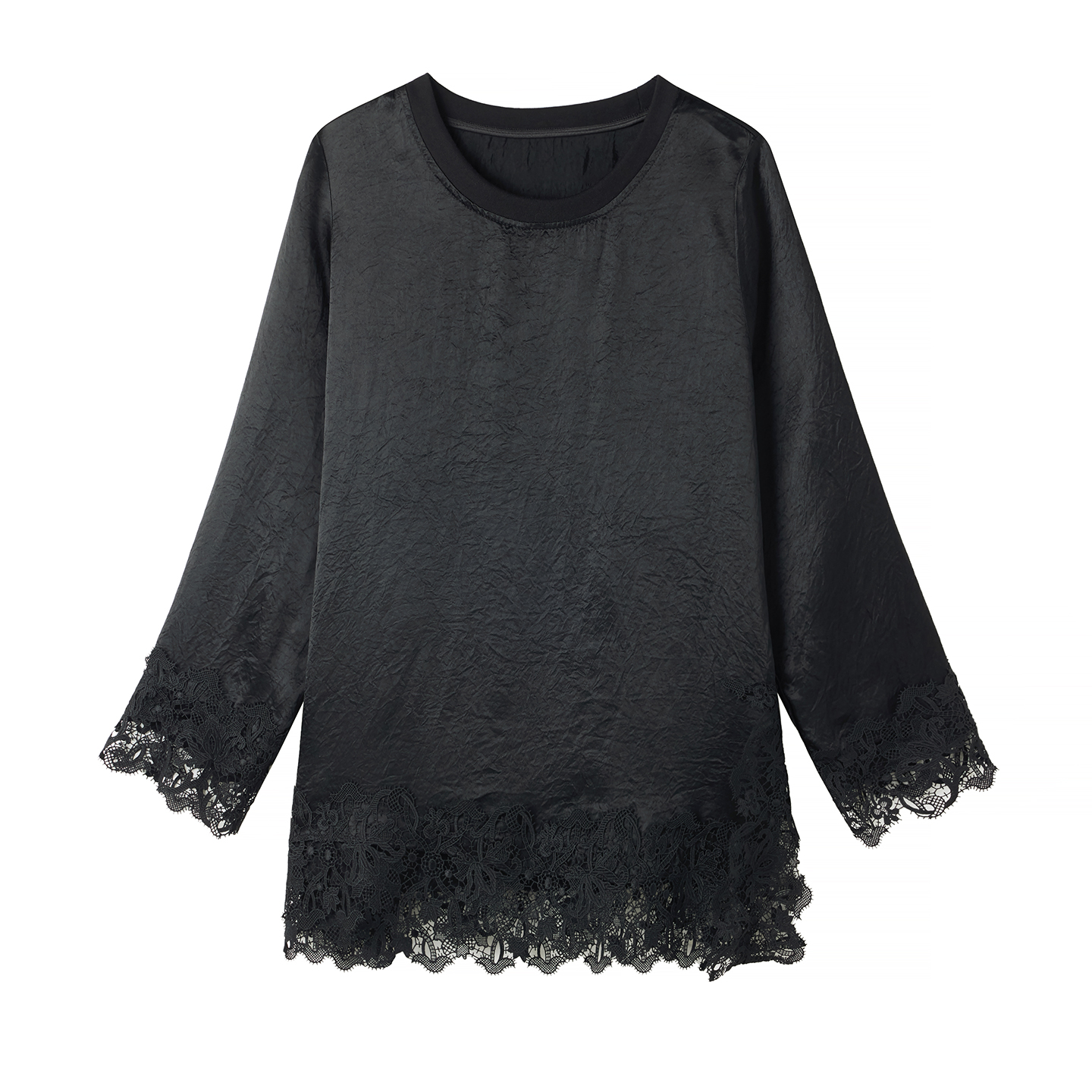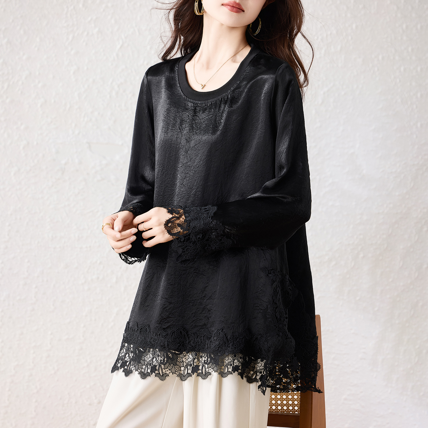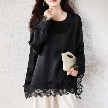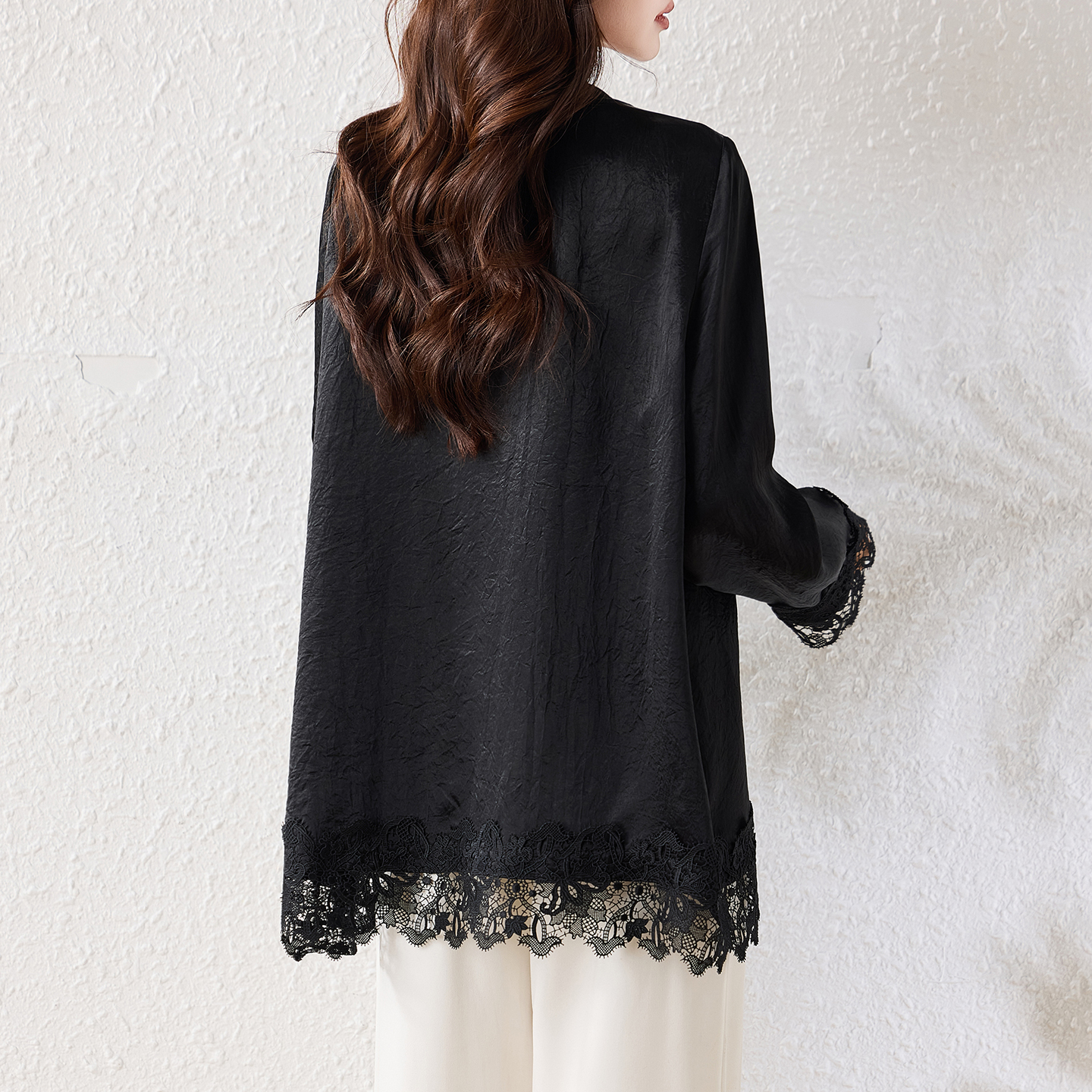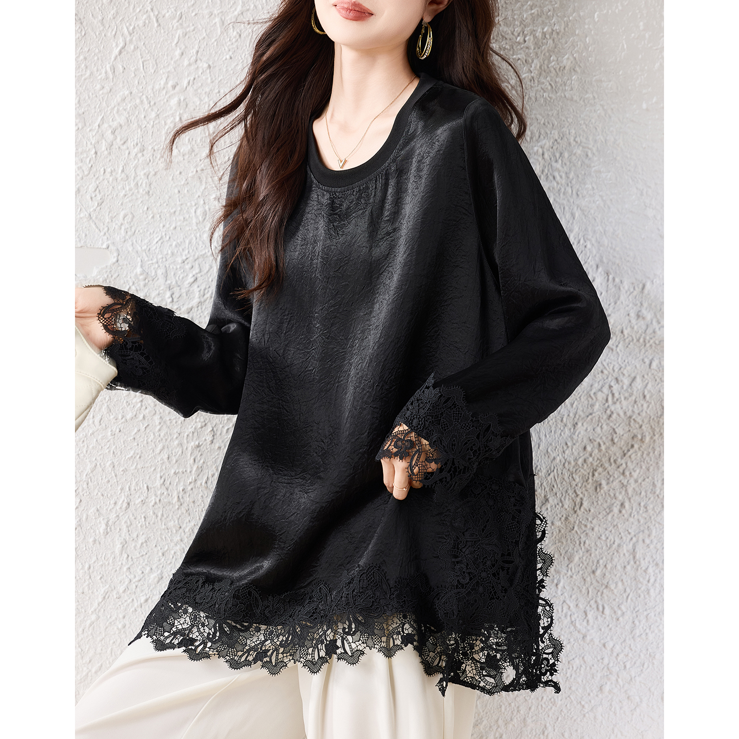 Home > 长袖雪纺衫、衬衫、上衣 > FA54835# 春季新款大码高级感蕾丝拼接醋酸高定小衫宽松显瘦上衣 服裝批發女裝批發服飾貨源