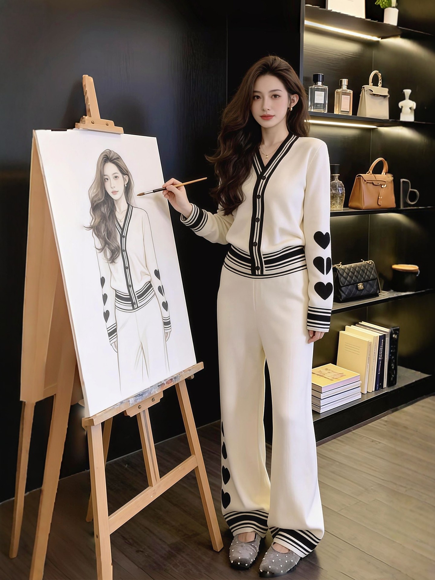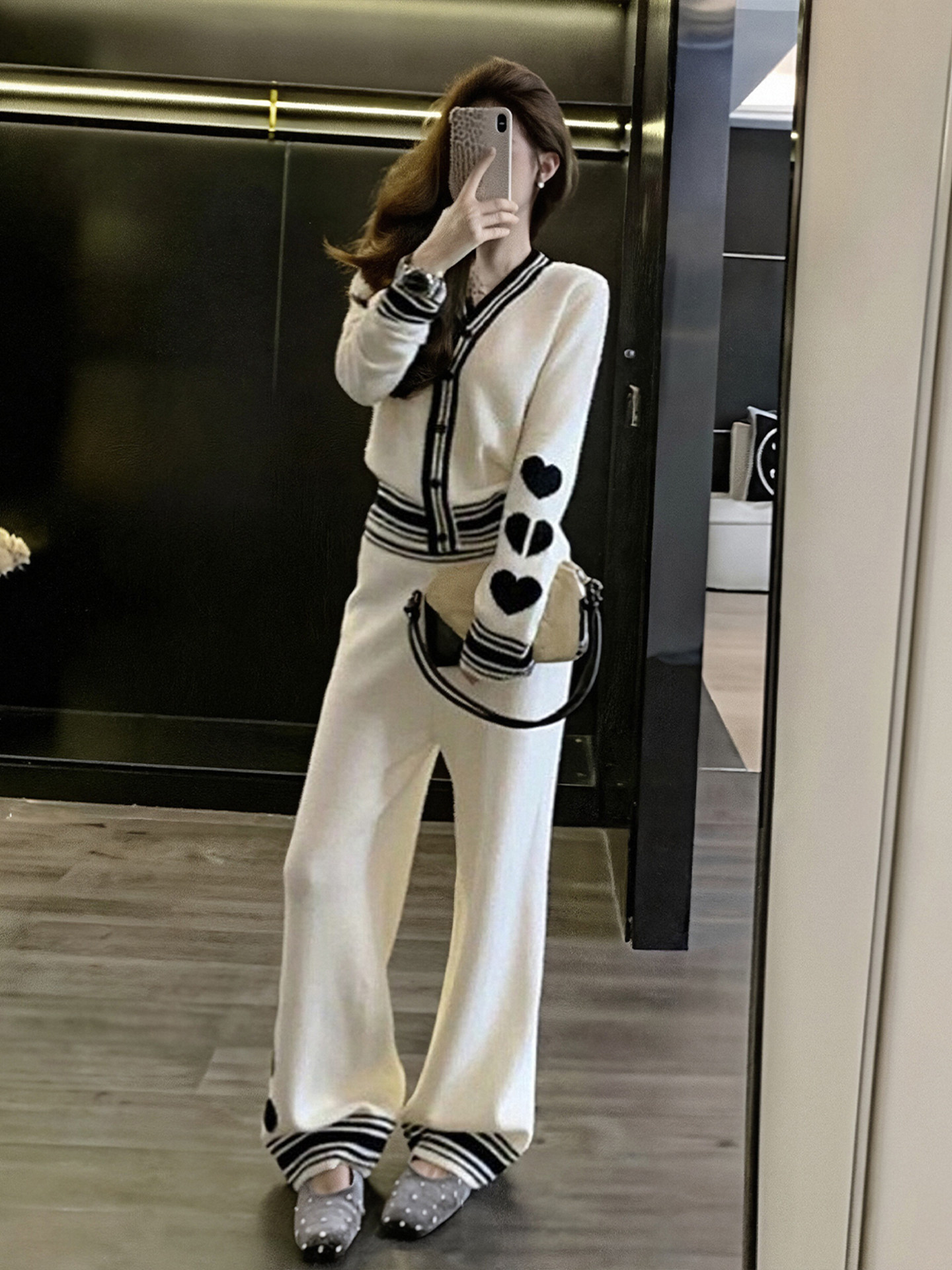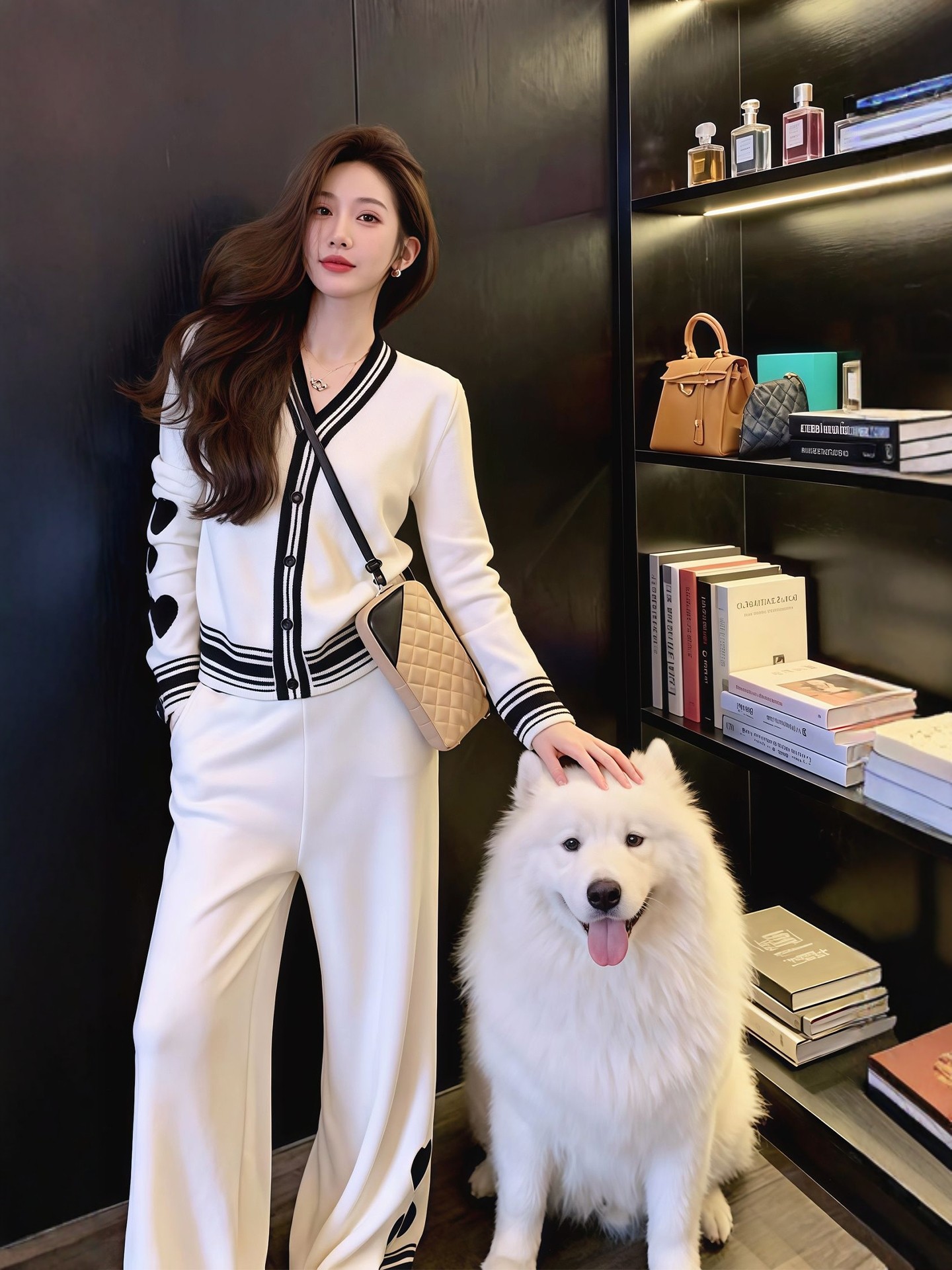 FA54851# 冬季搭配一整套大码胖mm撞色针织外套休闲裤巨好看气质两件套装女 服裝批發女裝批發服飾貨源