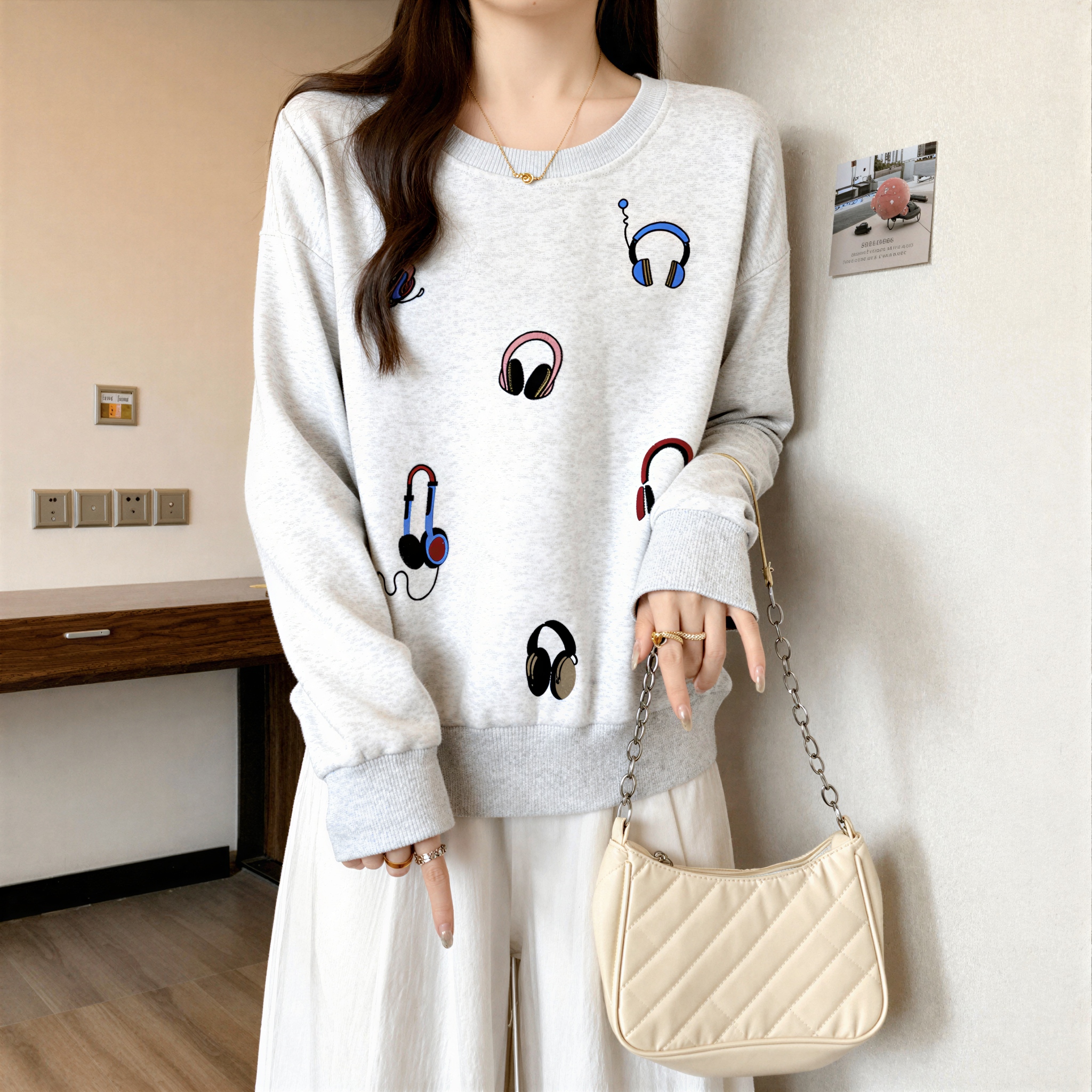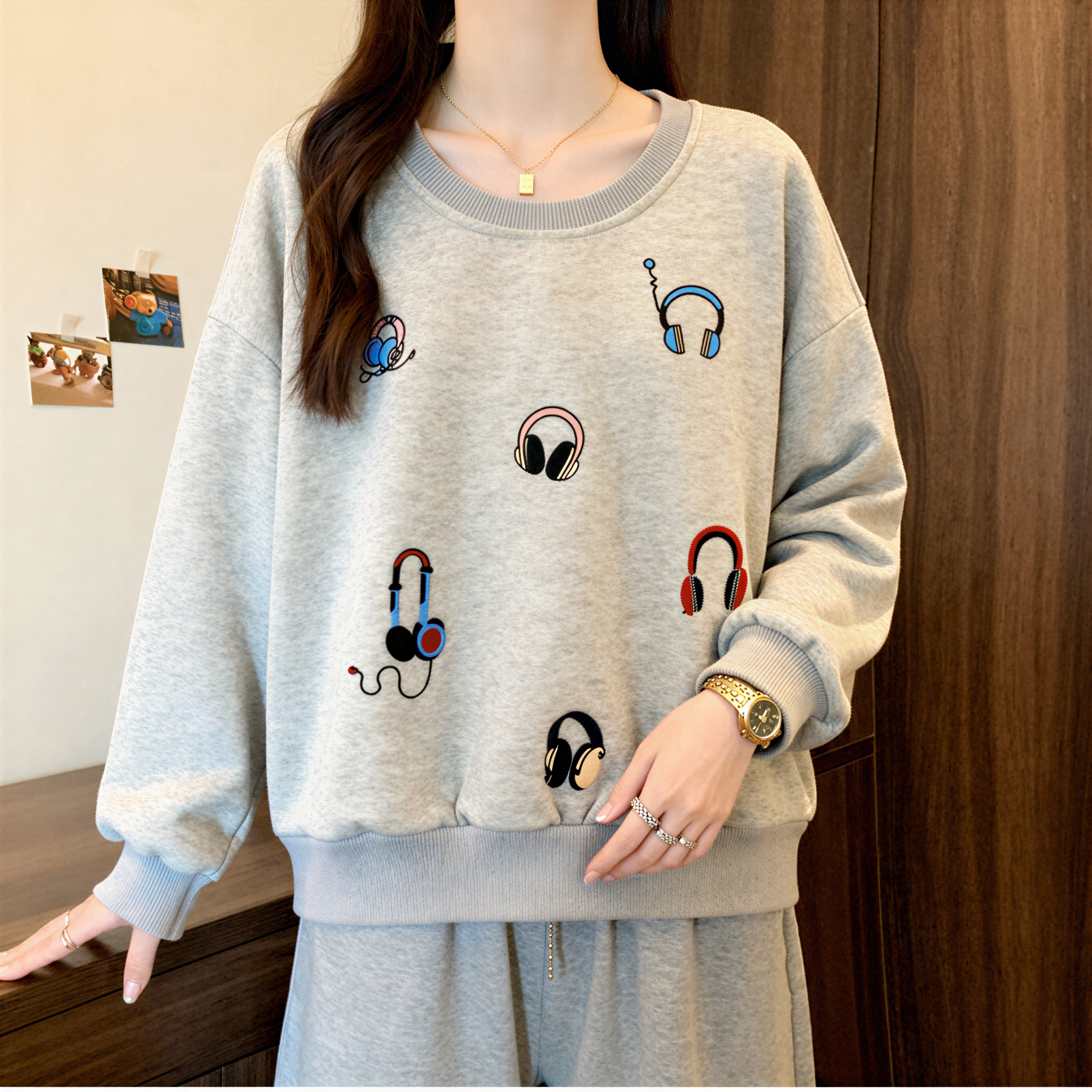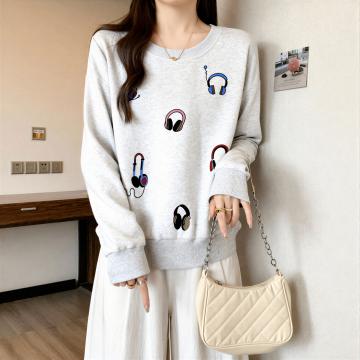 FA54866# 慵懒风印花长袖卫衣女秋季新款大码胖mm宽松时尚洋气打底chic上衣 服裝批發女裝批發服飾貨源