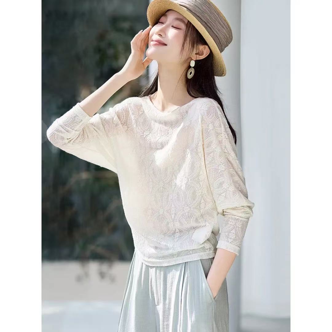 FA55036# 都市松弛感T恤春新款蝙蝠袖藏肉纸片人长袖T恤 服裝批發女裝批發服飾貨源