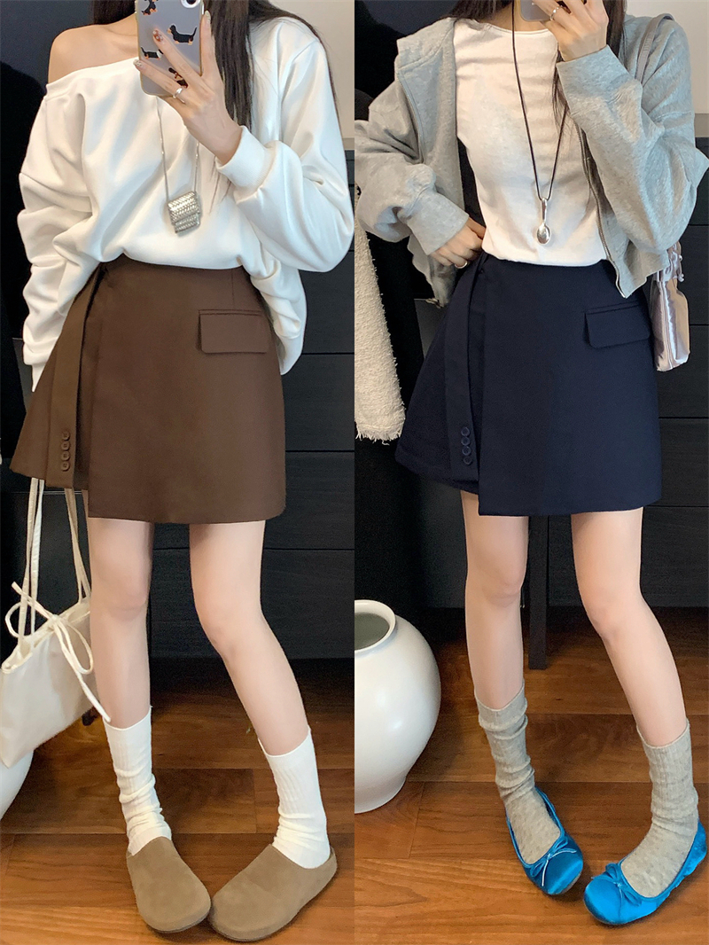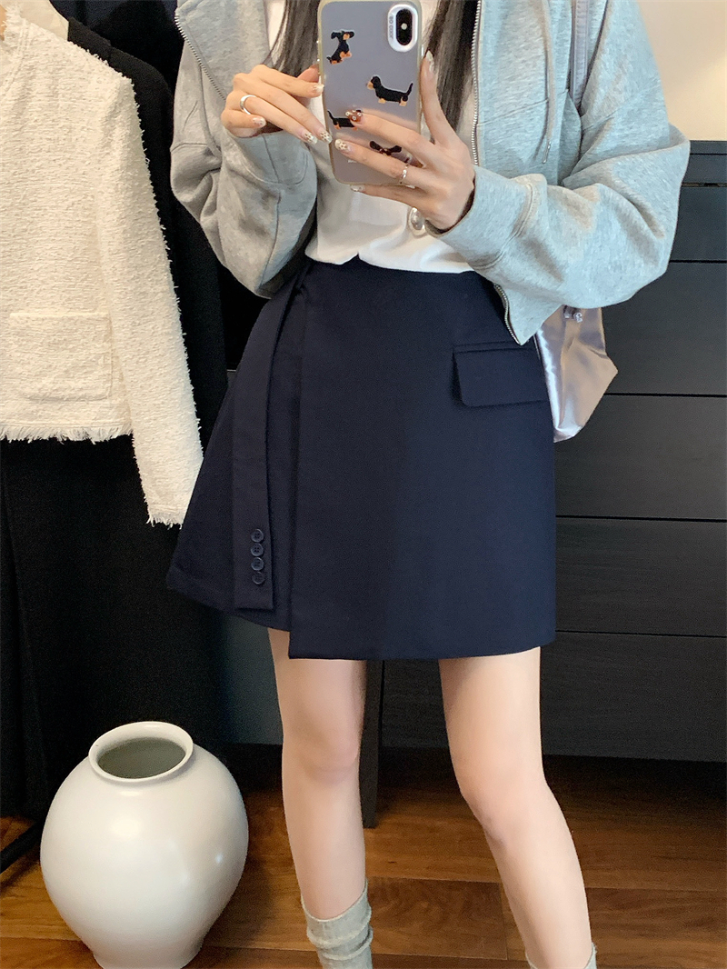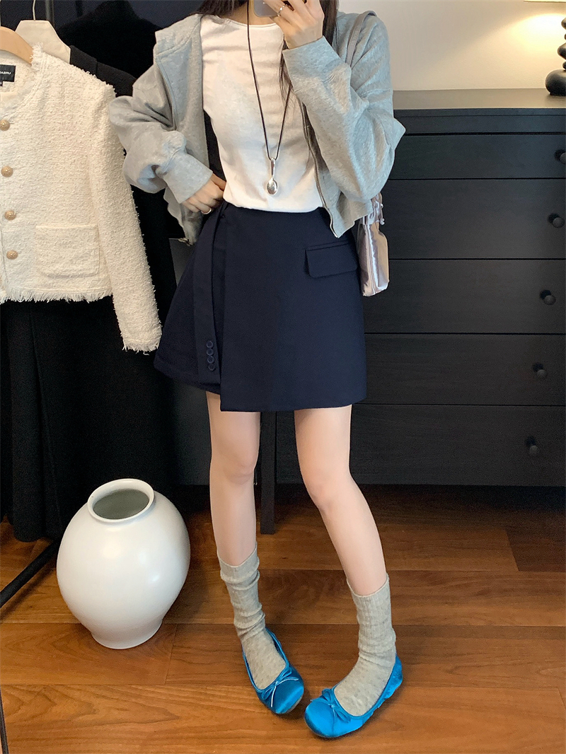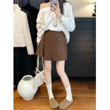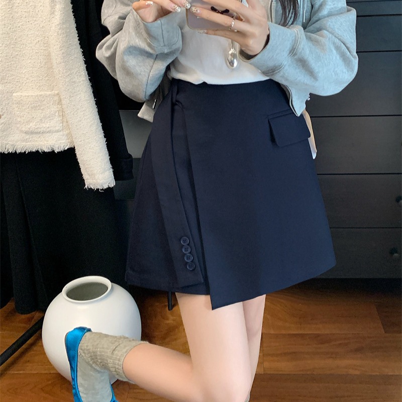FA55208# ~春高腰不规则飘带西装短裤遮肉显瘦a字半身裙 服裝批發女裝批發服飾貨源