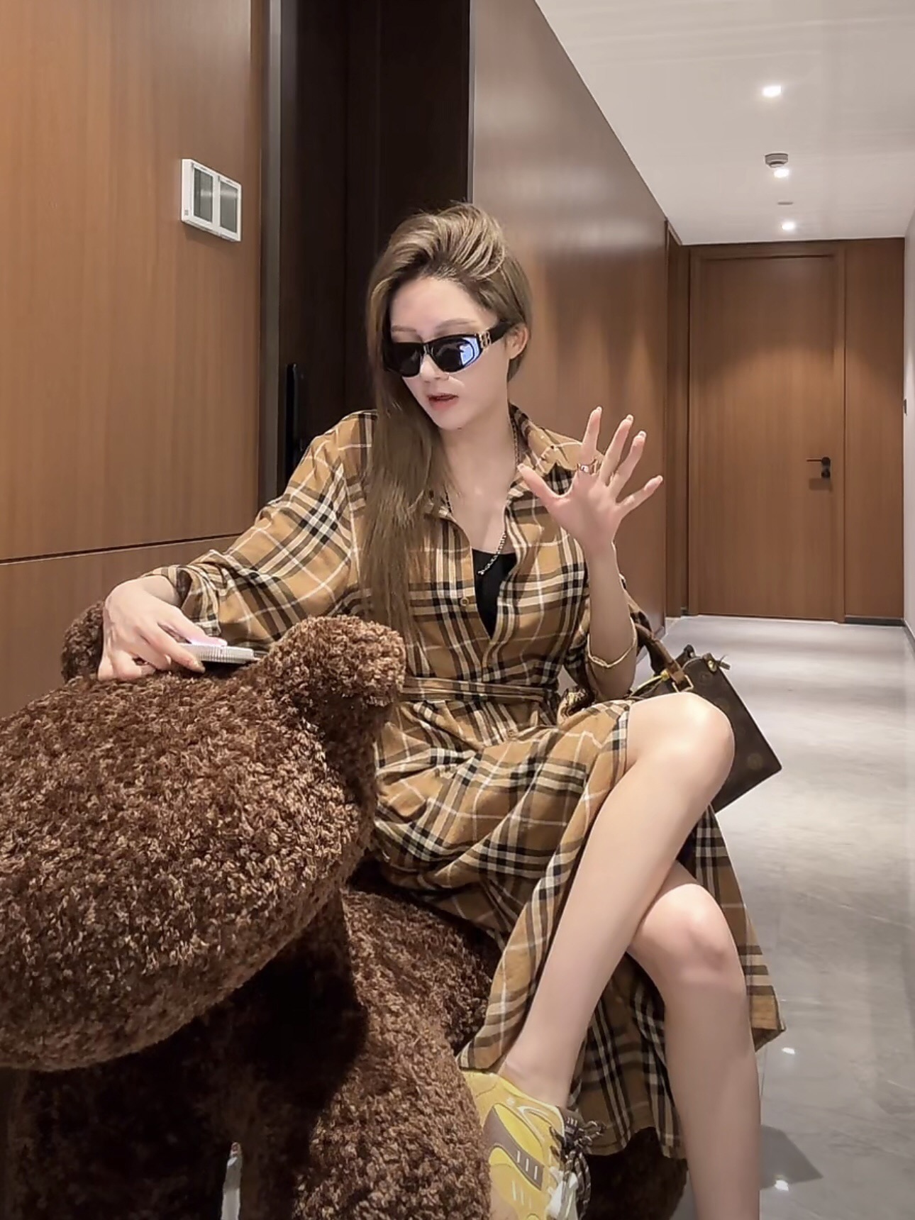 FA55281# alingsong米兰游记黄格纹轻奢裙 服裝批發女裝批發服飾貨源