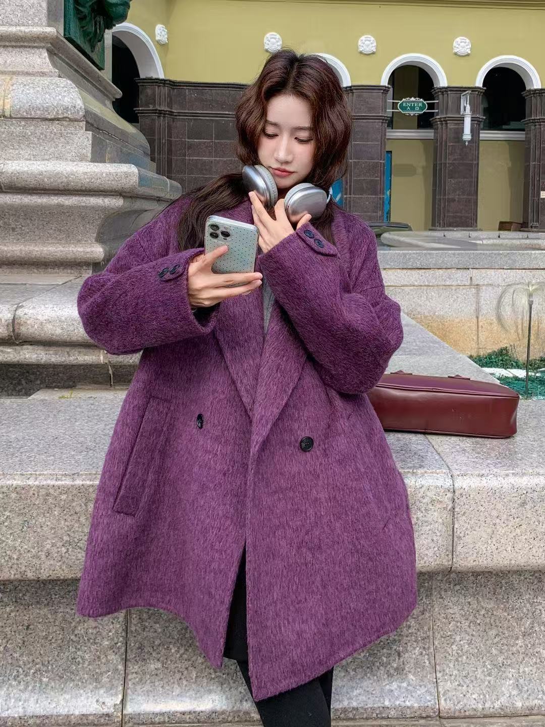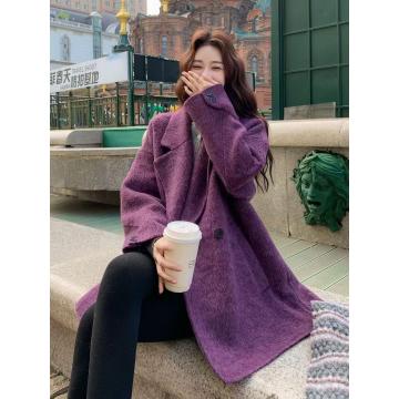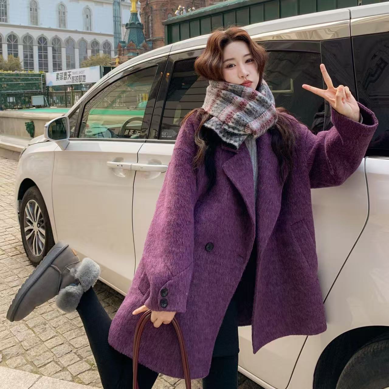 FA55308# 紫色贵气感双面呢羊毛呢子大衣女秋冬新款韩系复古时 服裝批發女裝批發服飾貨源