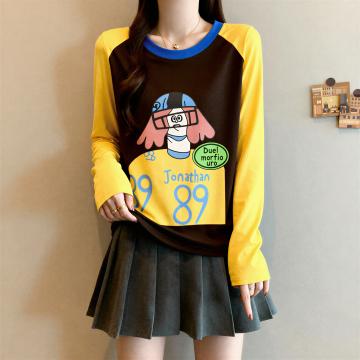 FA55466# 纯棉撞色插肩袖长袖t恤女秋冬新款流行大码胖MM显瘦打底上衣 服裝批發女裝批發服飾貨源