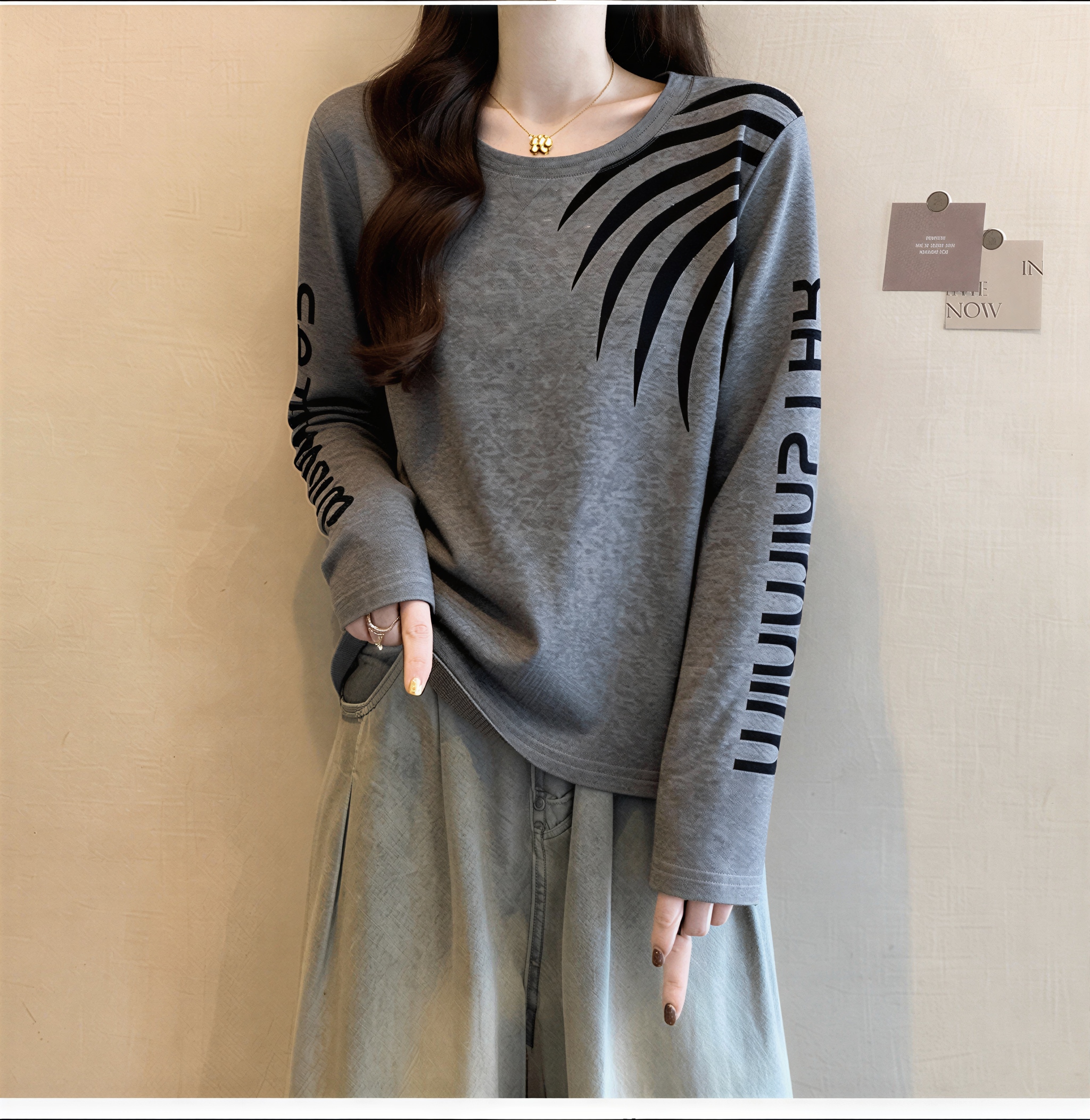 FA55471# 秋冬新款纯棉时尚正肩长袖T恤大码女装胖mm今年流行显瘦上衣 服裝批發女裝批發服飾貨源