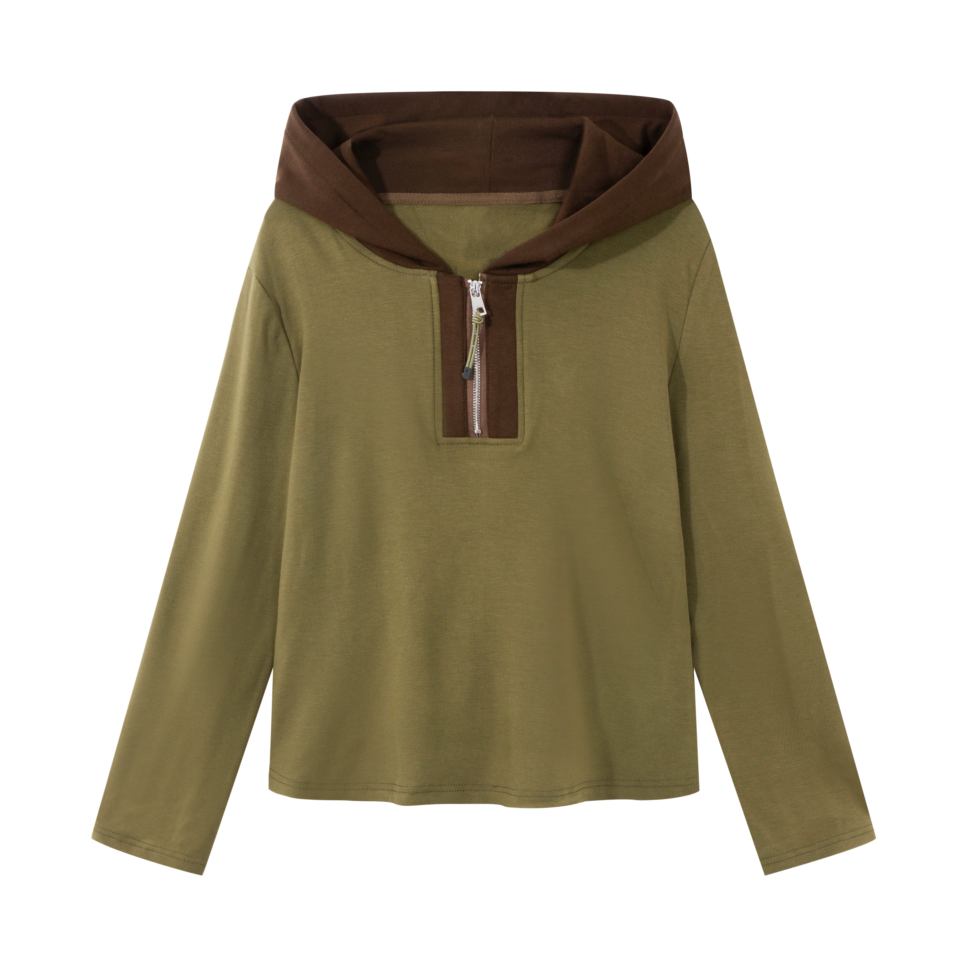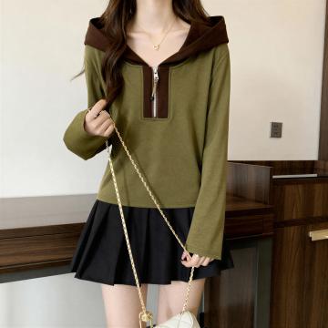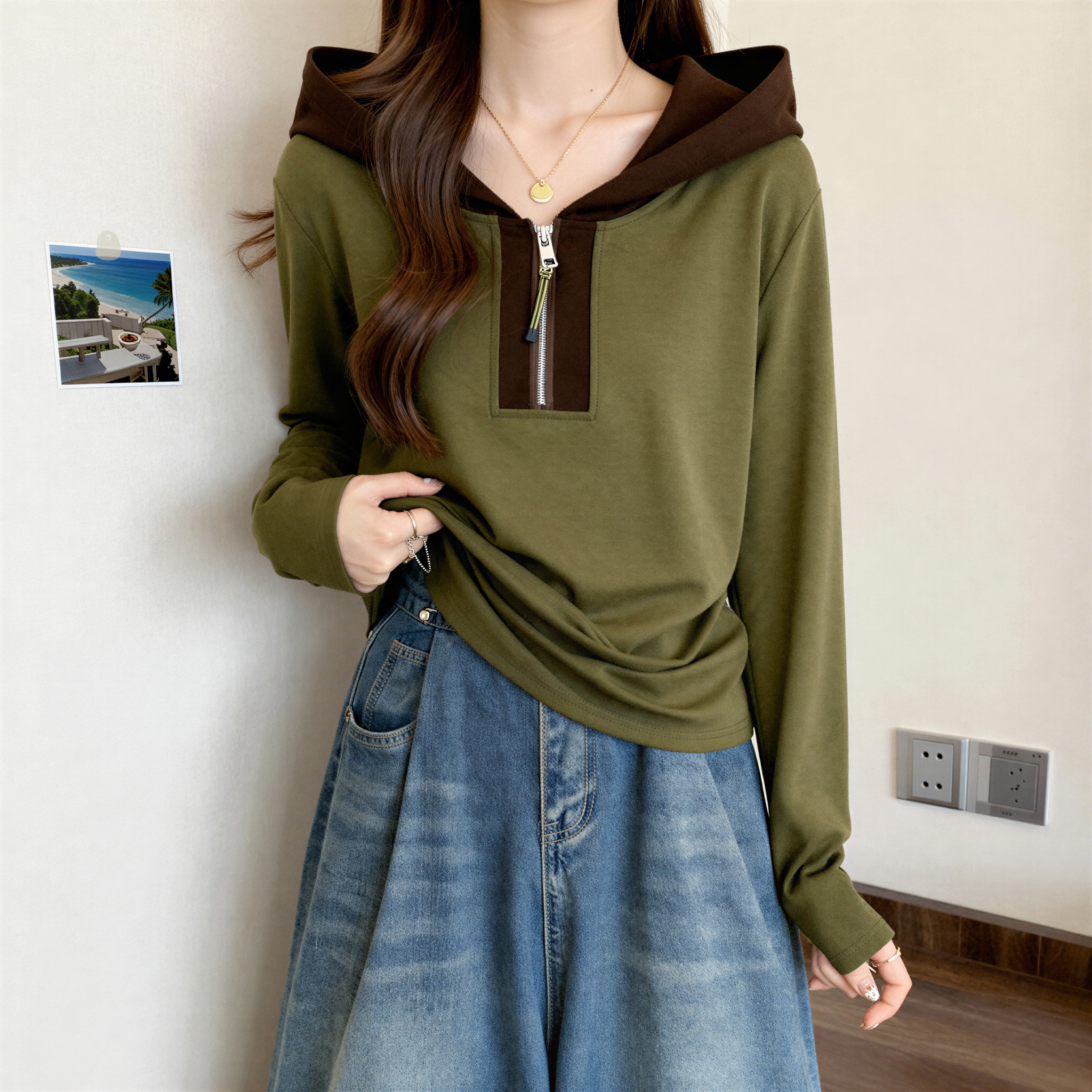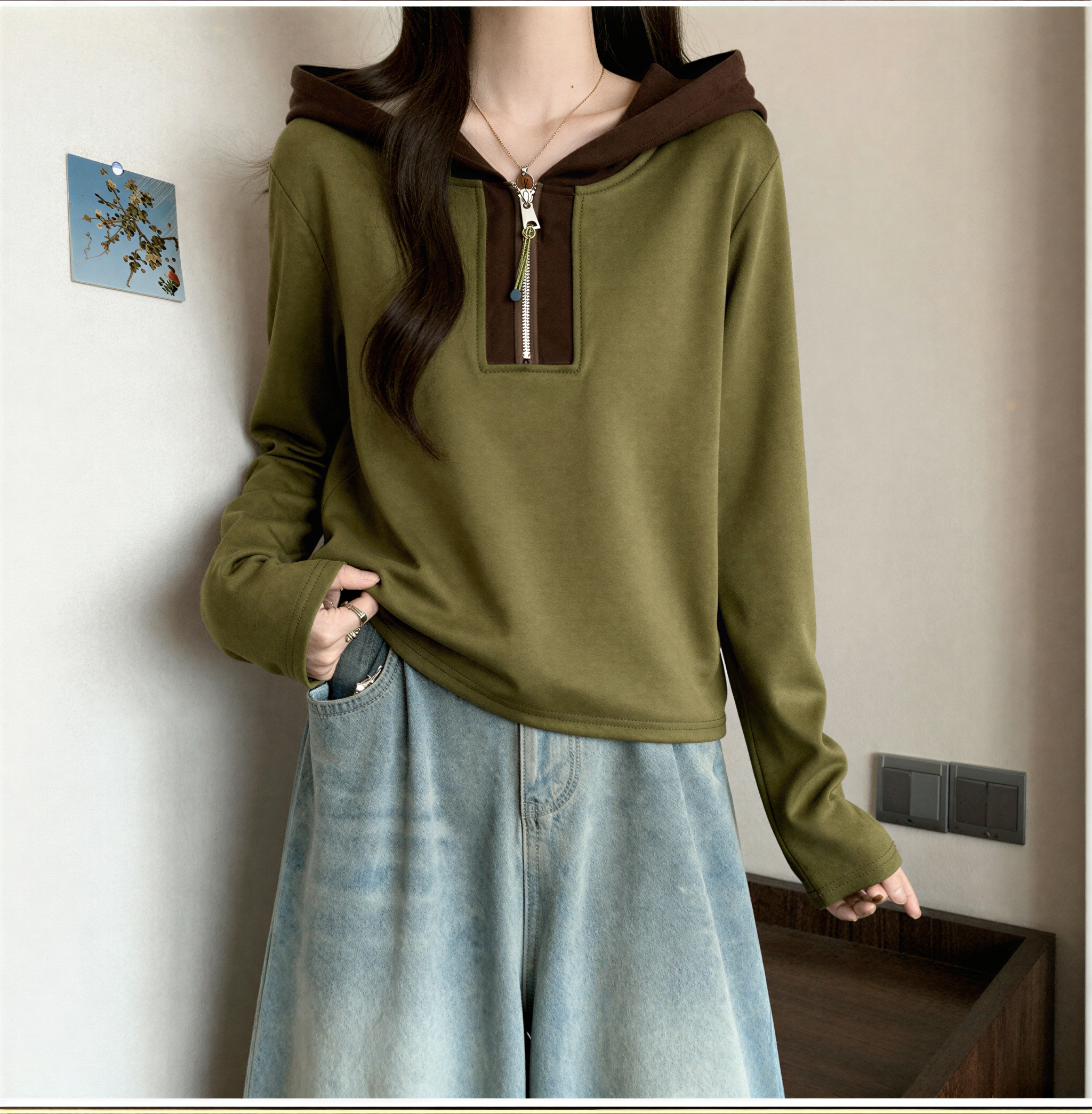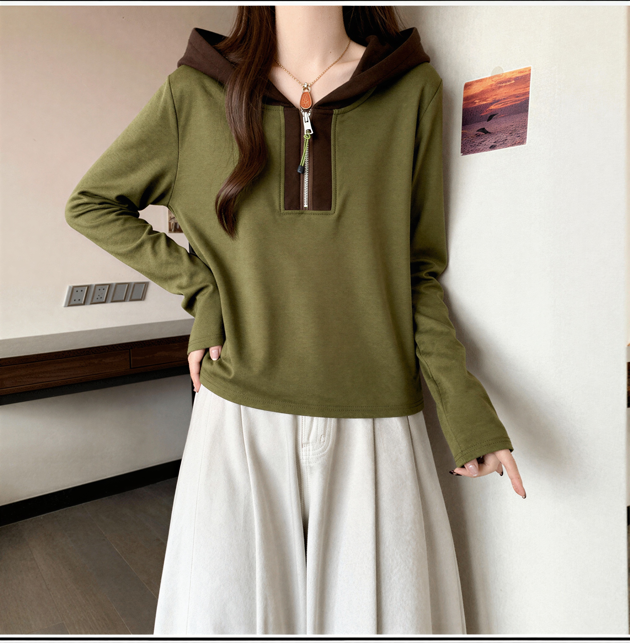 FA55569# 半拉链连帽半拉链长袖T恤女秋冬新款大码胖mm修身巨显瘦帽衫上衣 服裝批發女裝批發服飾貨源