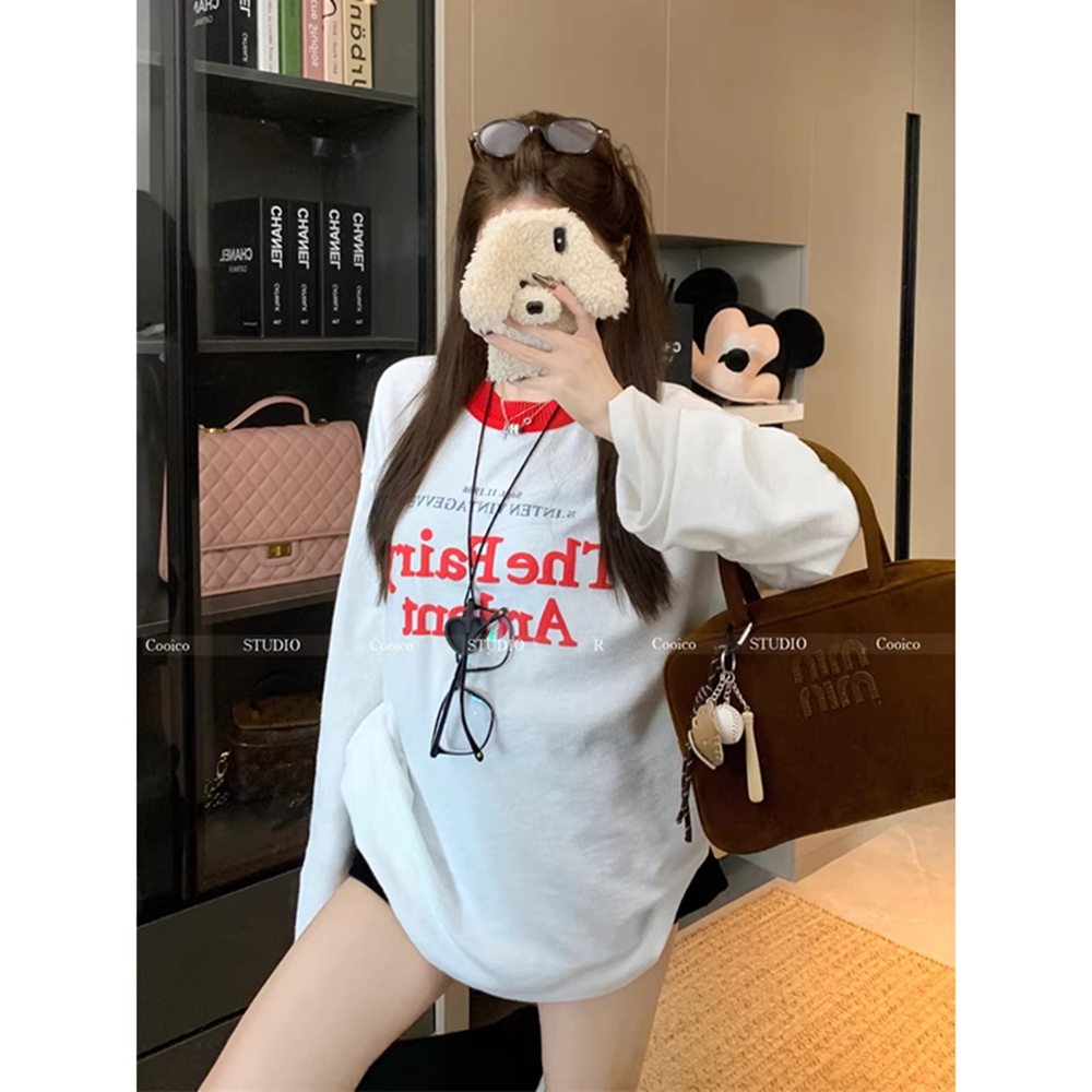 FA55639# +原版质量长袖美式辣妹T恤女韩系爵士罩衫 服裝批發女裝批發服飾貨源