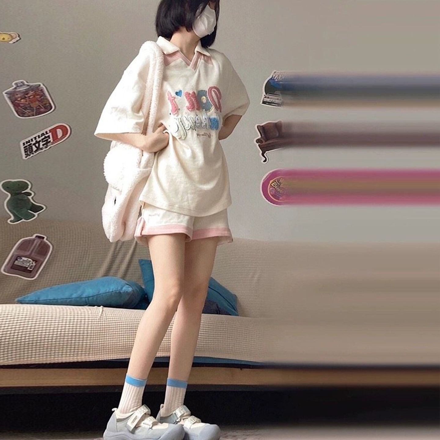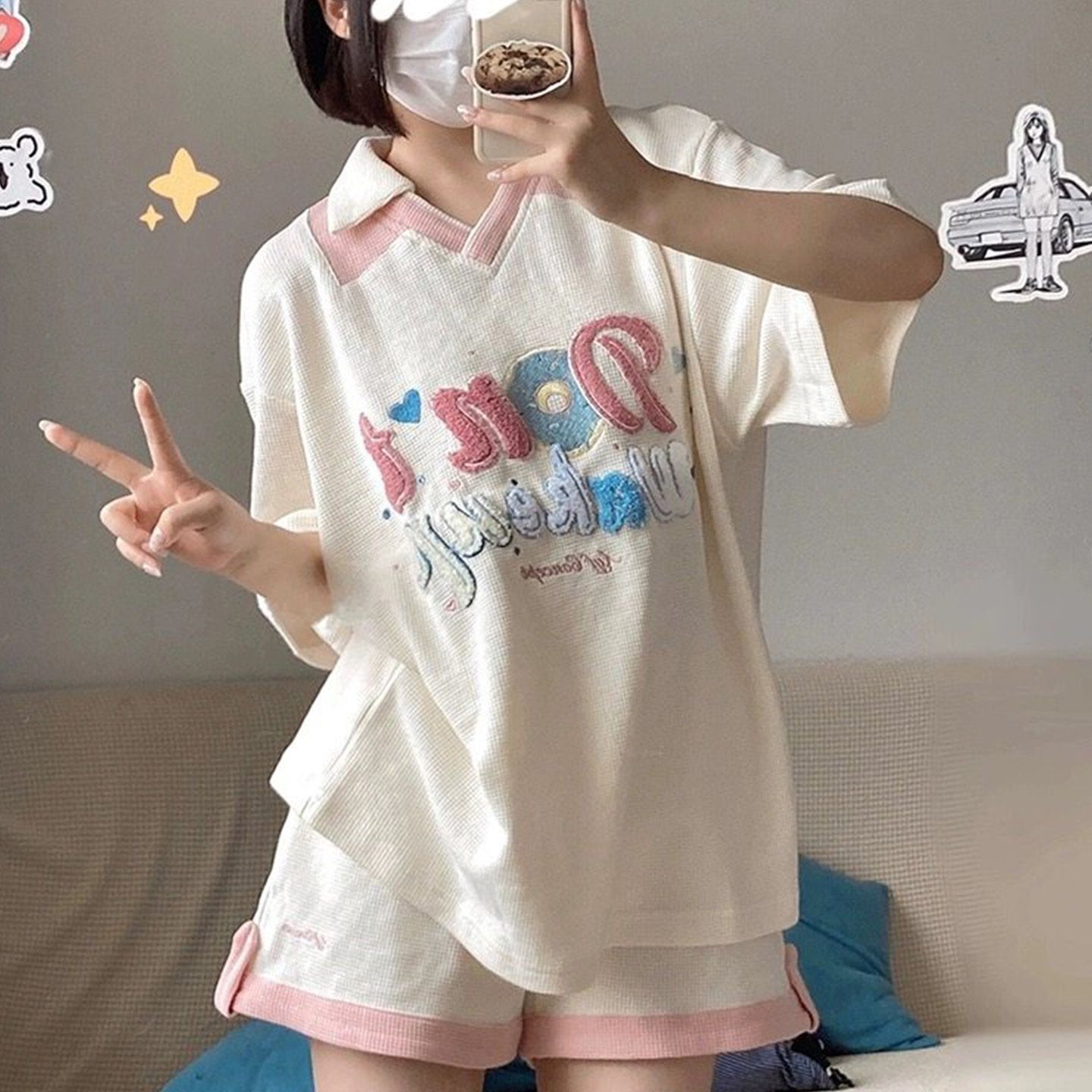 BY10158# 棉华夫格原版毛巾绣原版做法多巴胺少女可爱服套装两件套 服裝批發女裝批發服飾貨源