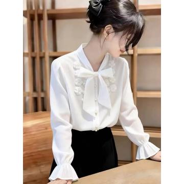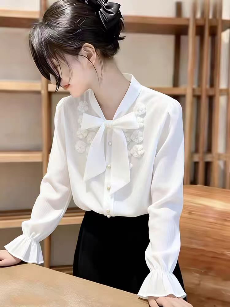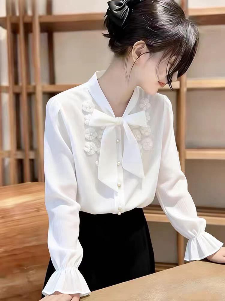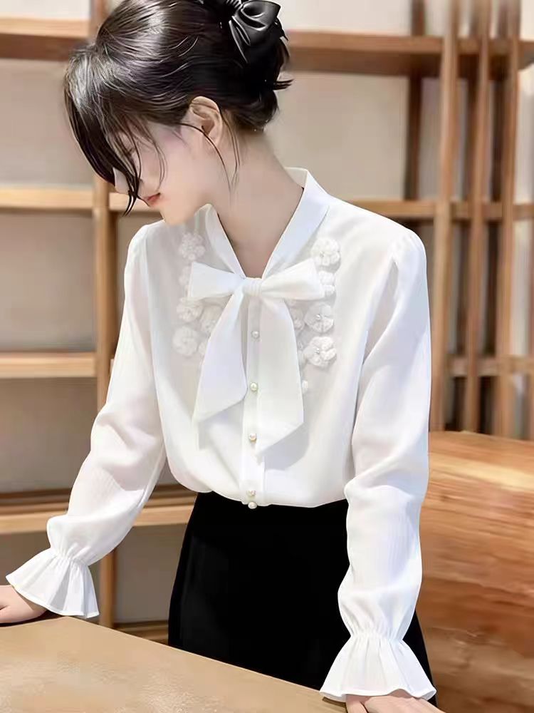 BY10172# 法式别致蝴蝶结衬衫女春秋新品设计感小众上衣气质叠穿衬衣 服裝批發女裝批發服飾貨源