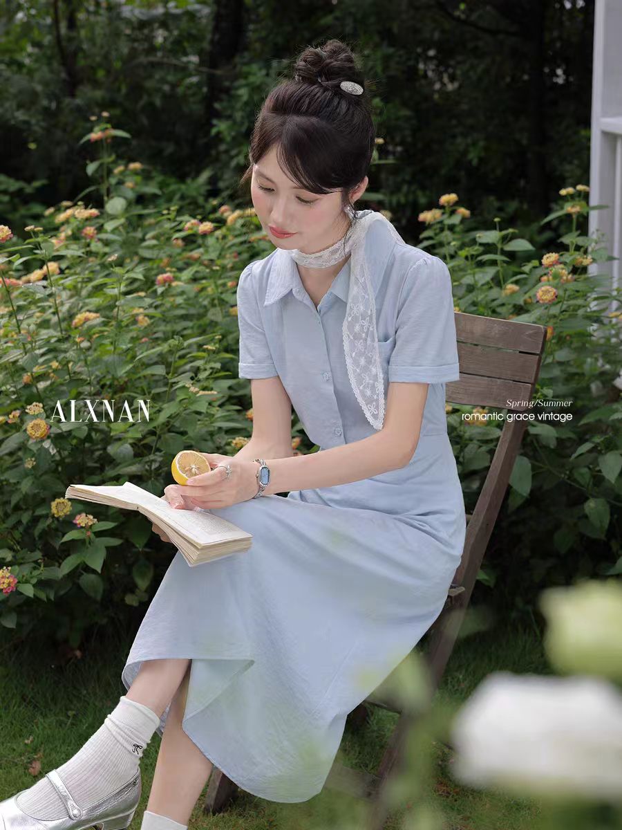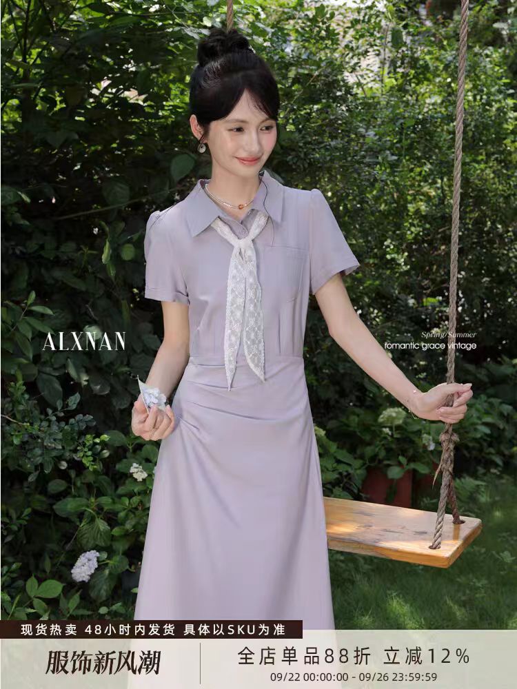 BY10176# 白棠雾黎法式气质polo领紫色连衣裙女夏季收腰衬衫裙子 服裝批發女裝批發服飾貨源