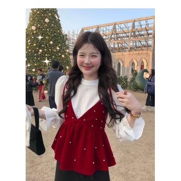 BY10886# 流光白茶韩版高级法式喇叭袖长袖衬衫女半高领气质上衣 服裝批發女裝批發服飾貨源