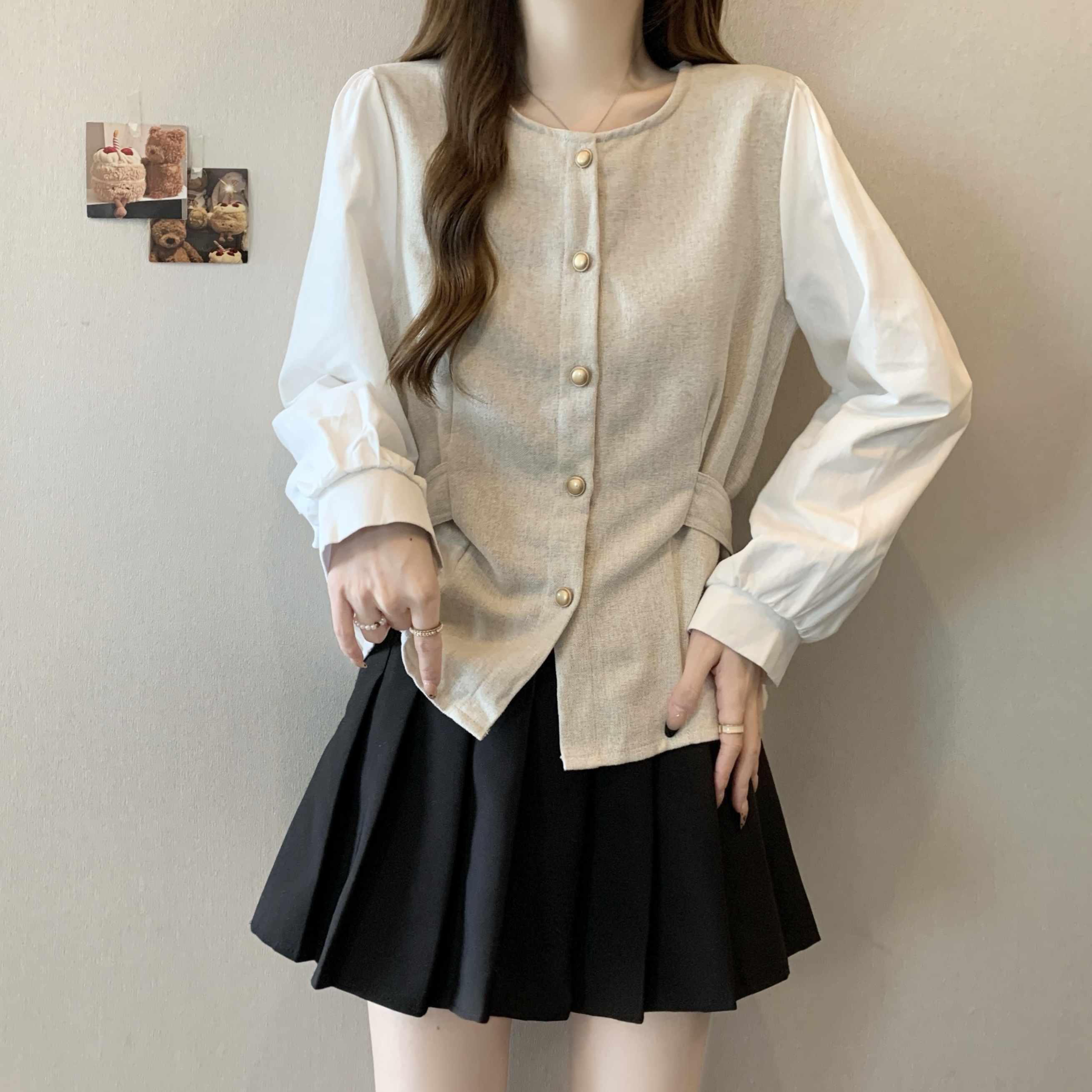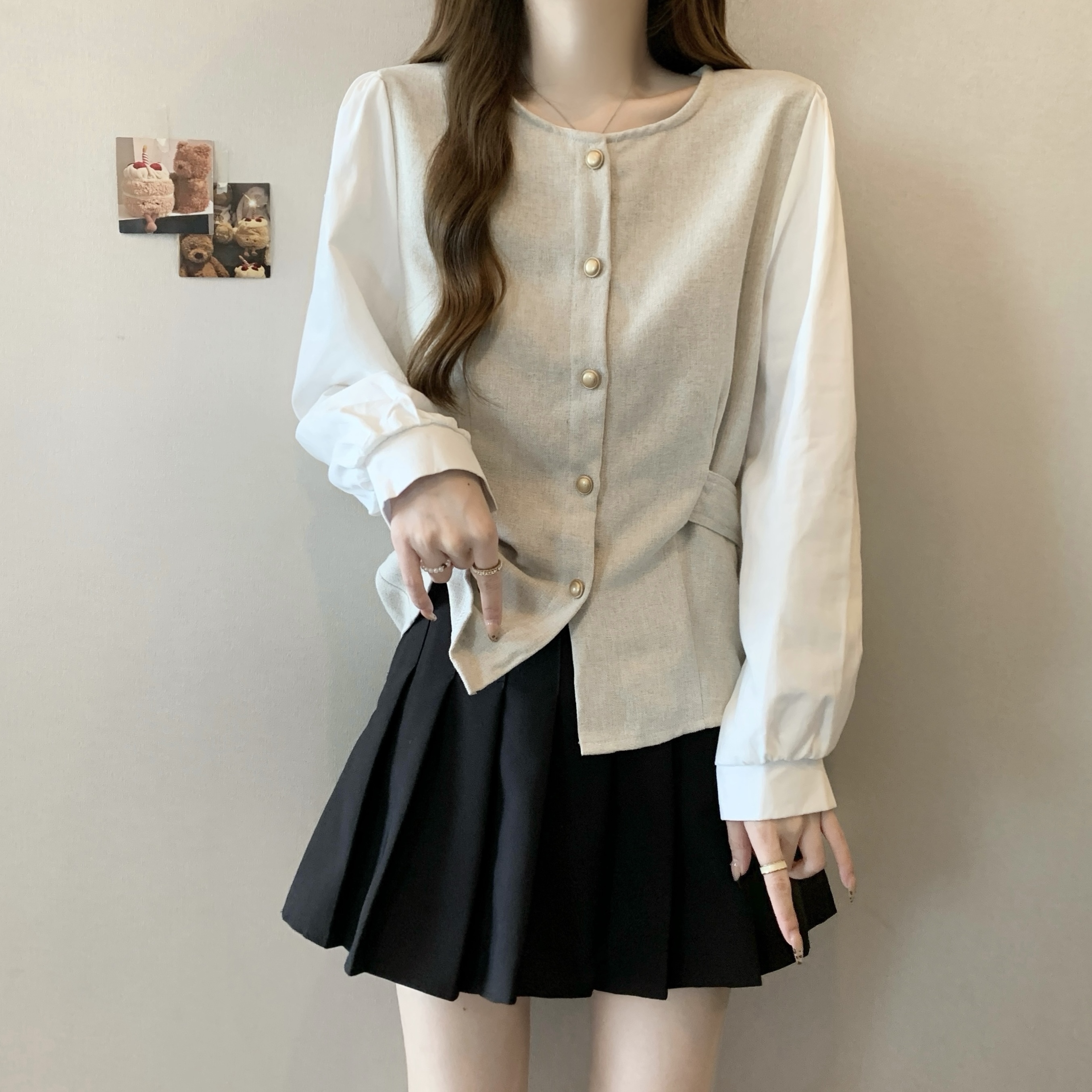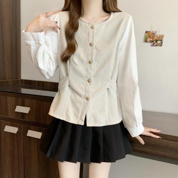 BY10959# 大码女装胖MM春季新款圆领设计感收腰衬衫休闲百搭显瘦上衣女 服裝批發女裝批發服飾貨源