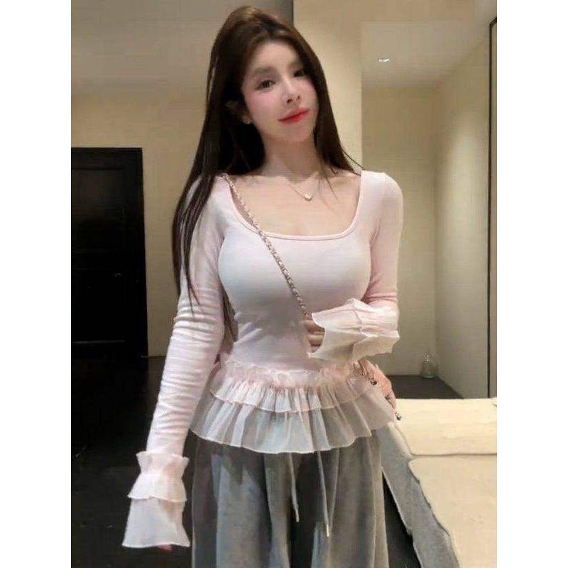 Home > 长袖T恤 > 法式纯欲甜美设计感蕾丝拼接长袖T恤叠穿上衣 服裝批發女裝批發服飾貨源