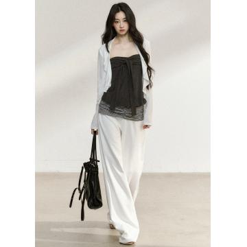 BY11044# 原创设计韩系松弛感穿搭白色罩衫搭配灰色吊带两件套装 服裝批發女裝批發服飾貨源