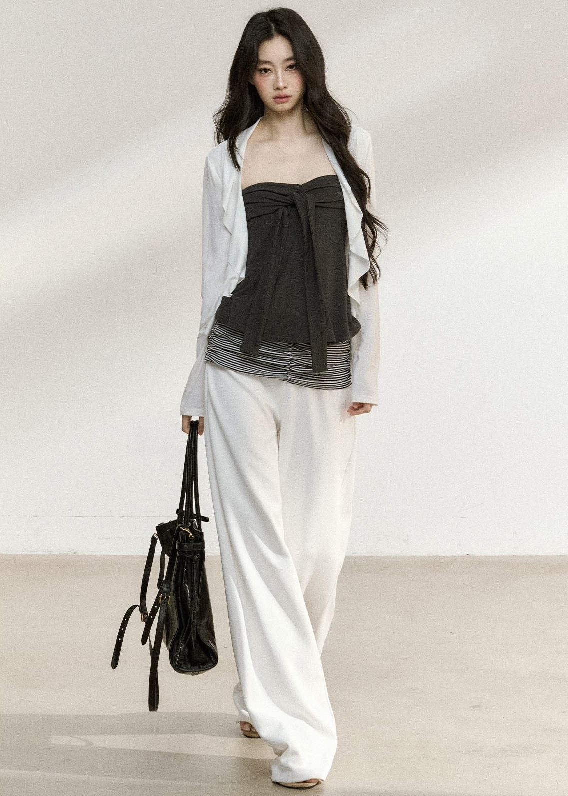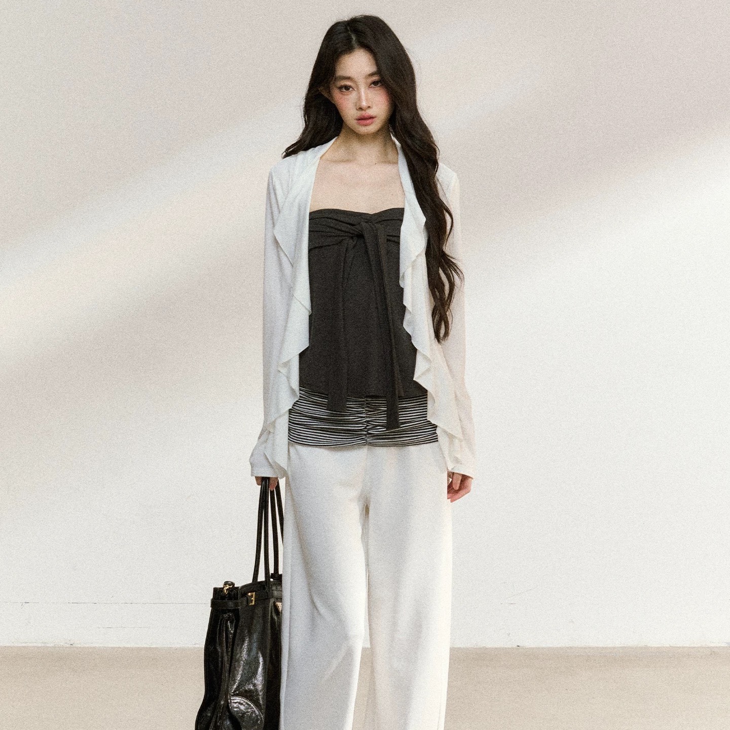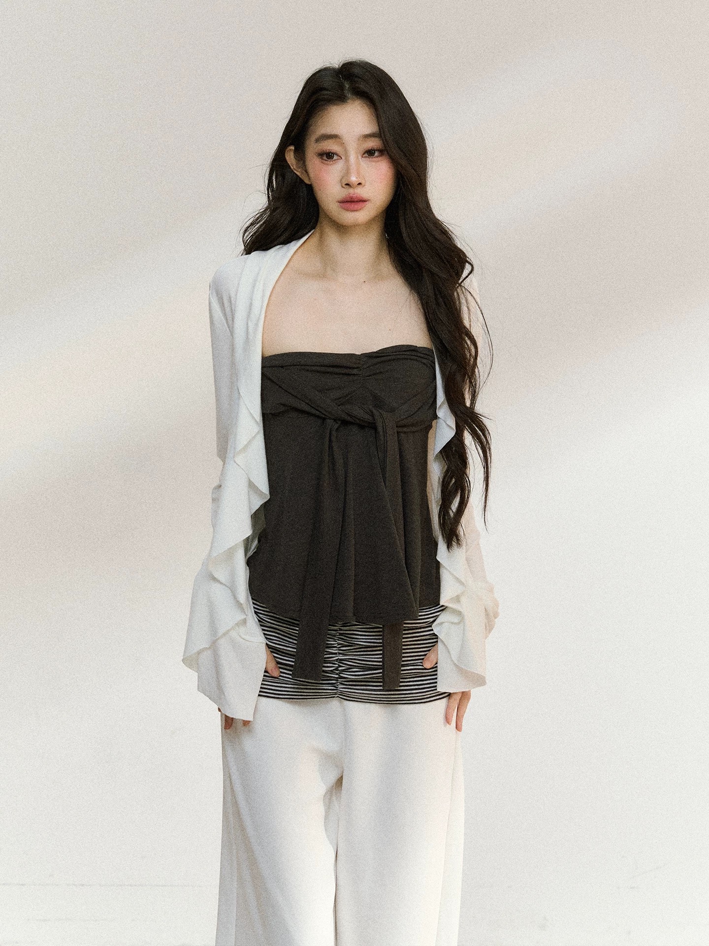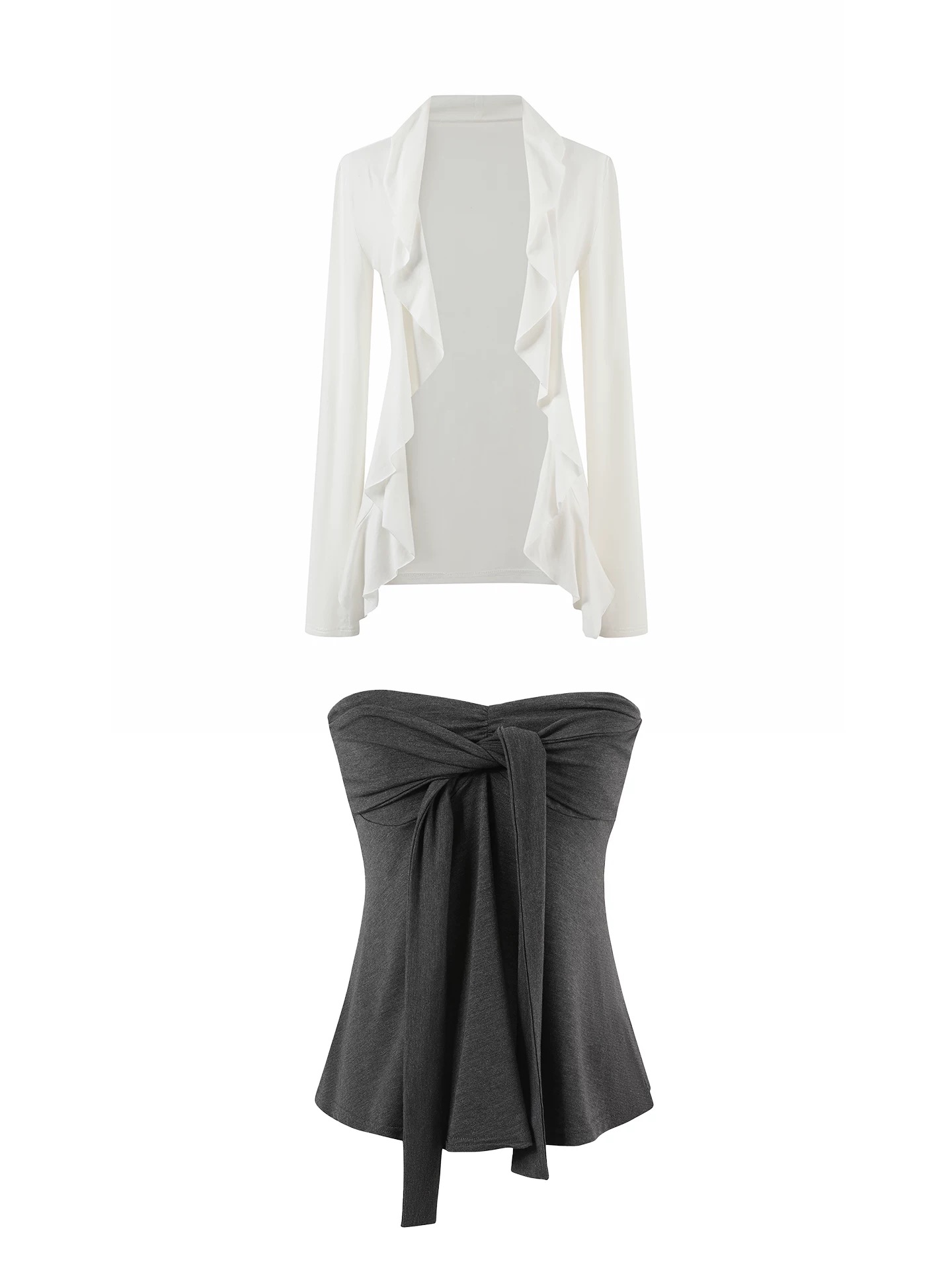 白色开衫+灰色内搭