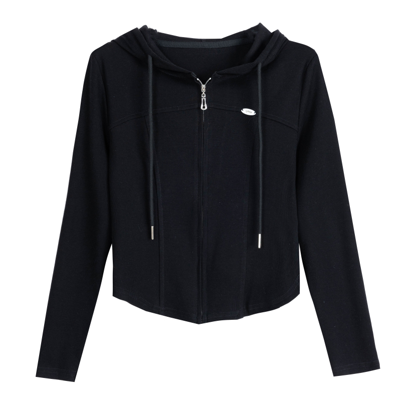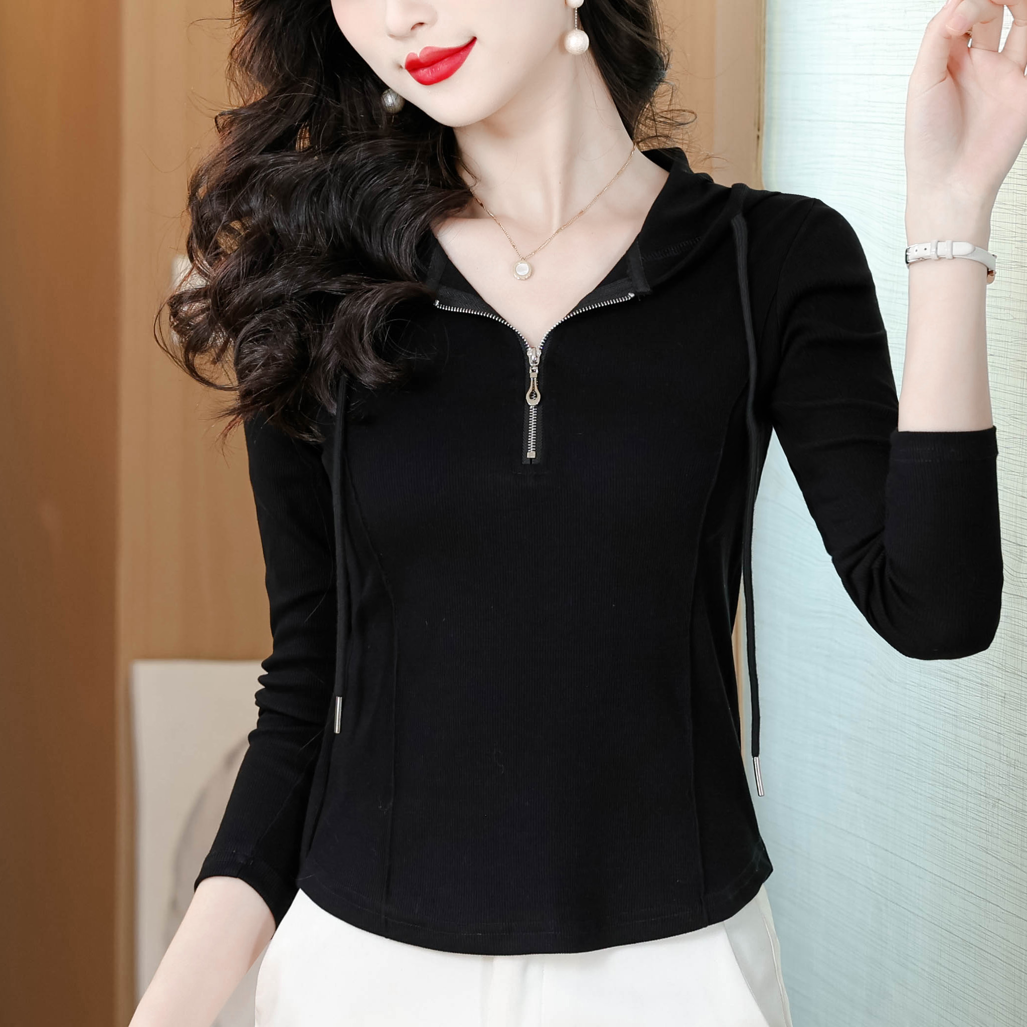 BY11133# 春季新款纯色连帽百搭修身长袖T恤女简约休闲常规正肩上衣 服裝批發女裝批發服飾貨源