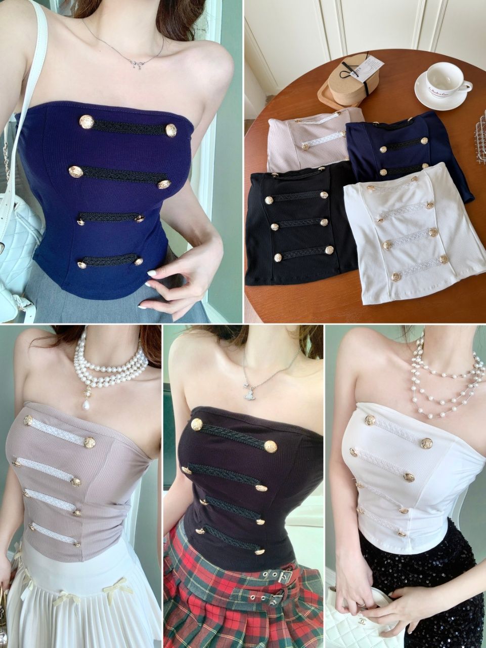 BY11266# 法式辣妹纽扣裹胸吊带背心女内搭别致设计感小众抹胸上衣 服裝批發女裝批發服飾貨源