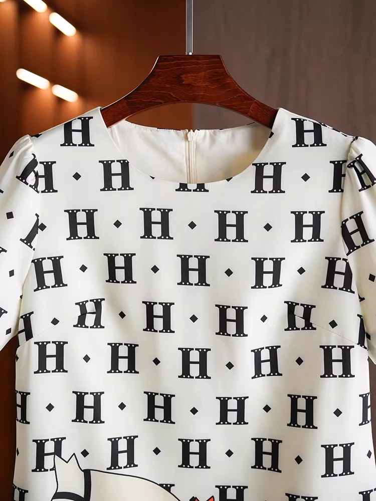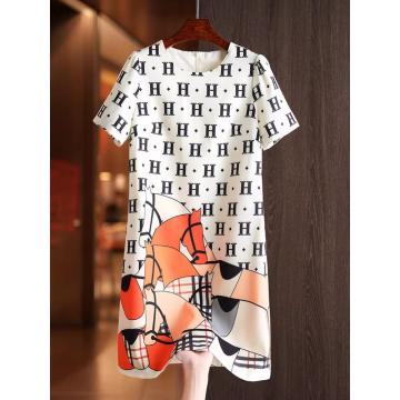 BY11370# 清纯系穿搭夏季卡通字母印花圆领短袖小个子显高直筒连衣裙 服裝批發女裝批發服飾貨源