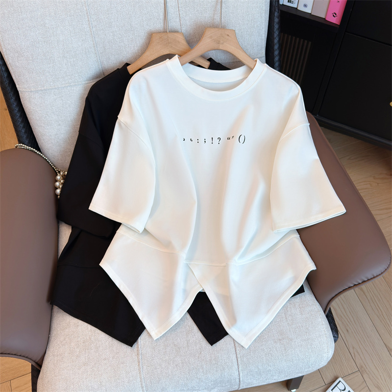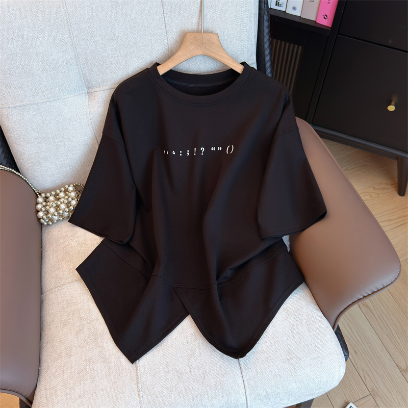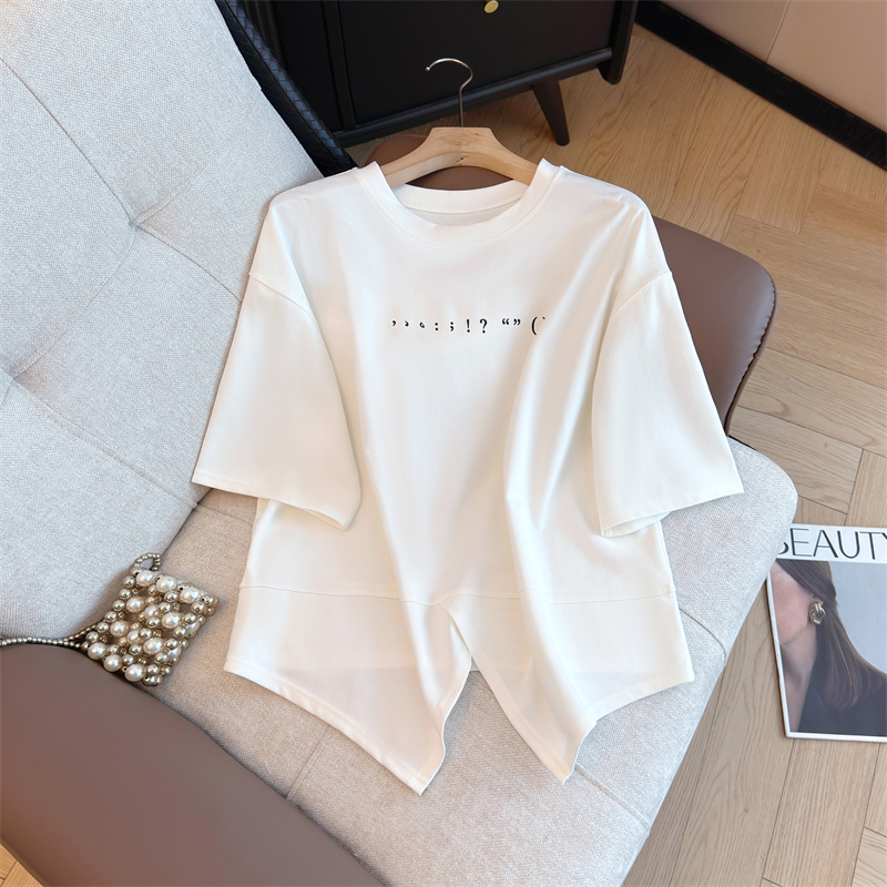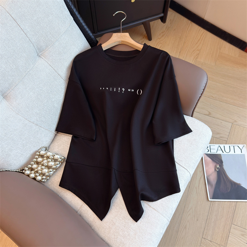 大码女装韩版圆领简约宽松短袖胖妹妹显瘦气质高级T恤 服裝批發女裝批發服飾貨源