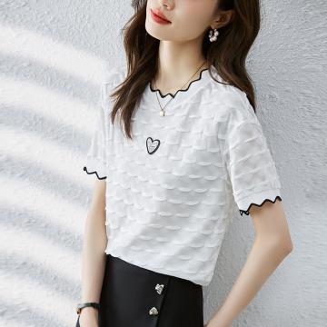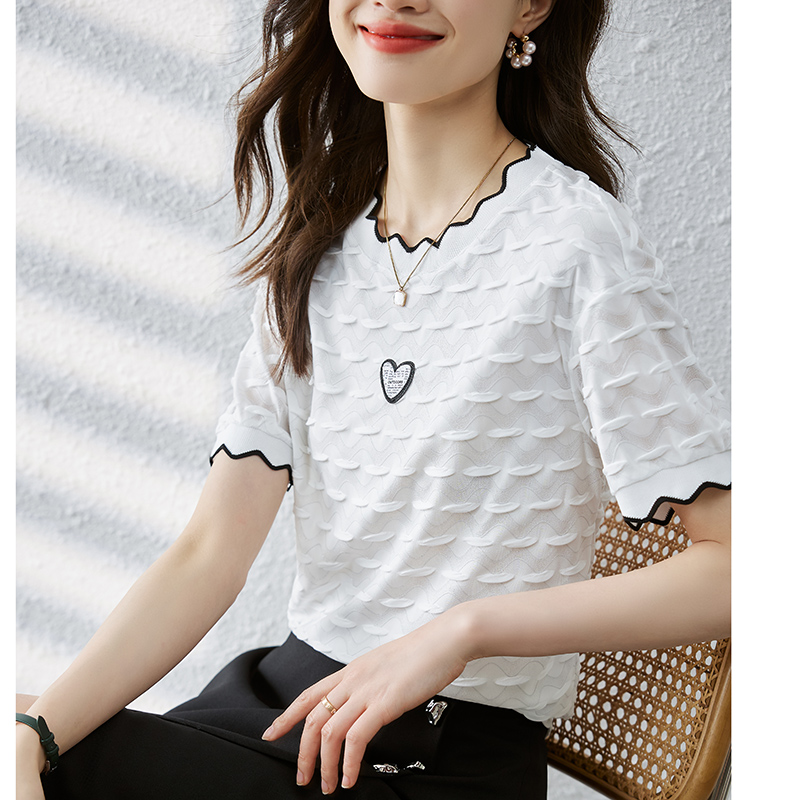 夏季新款韩版百搭拼接圆领短袖T恤女 服裝批發女裝批發服飾貨源