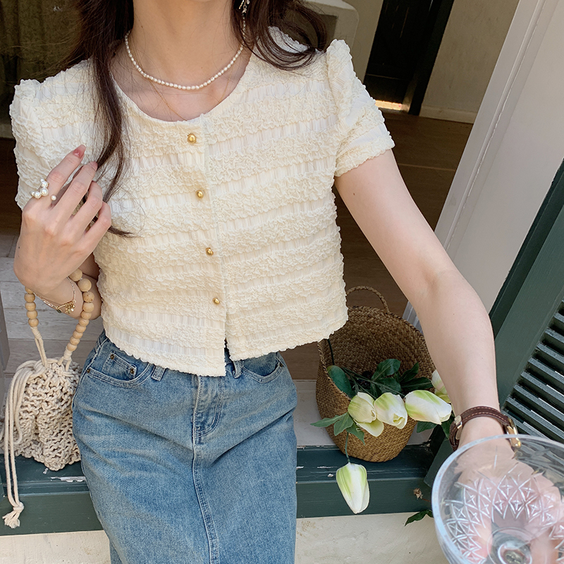 夏季新款韩版百搭重工面料短袖衬衫女上衣夏 服裝批發女裝批發服飾貨源