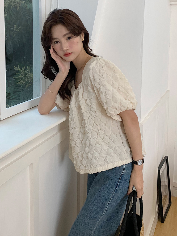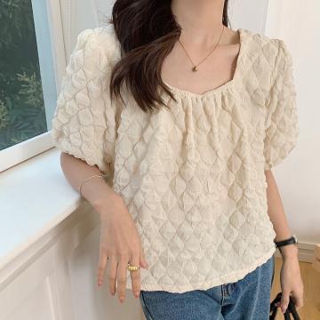 夏季新款韩版百搭宽松方领短袖衬衫女上衣夏 服裝批發女裝批發服飾貨源