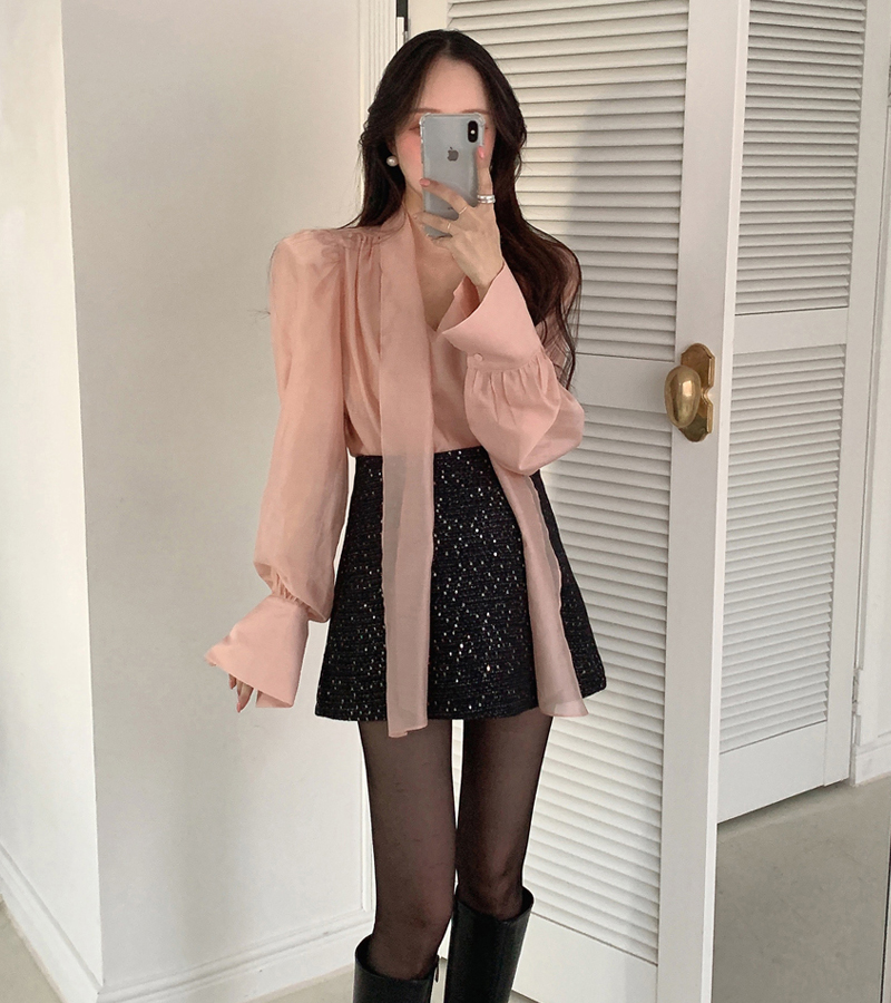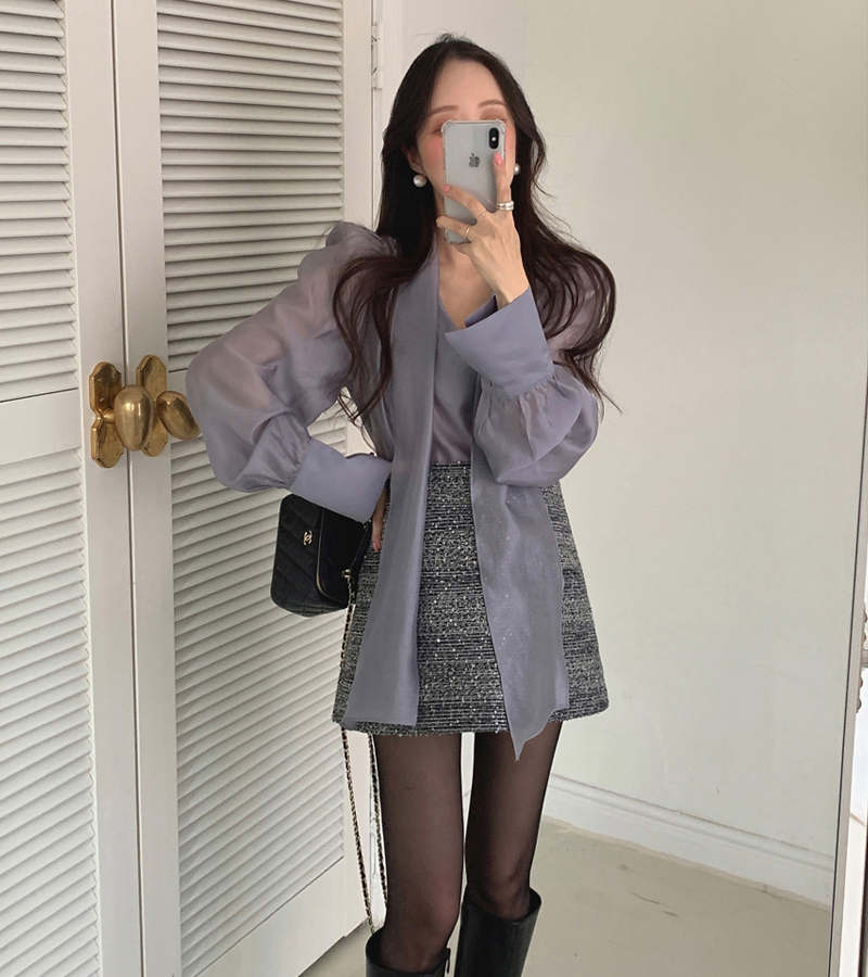 BY12727# 韩国chic早春气质V领飘带百搭上衣 服裝批發女裝批發服飾貨源