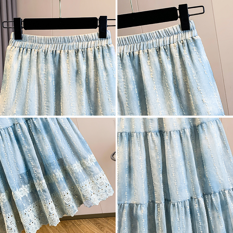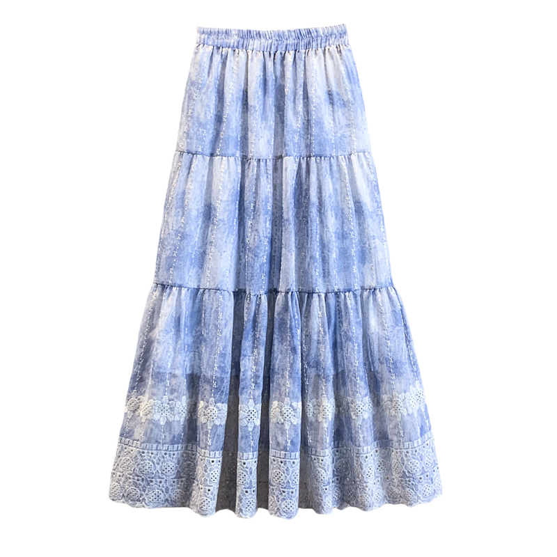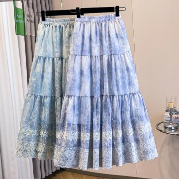 BY13704# 大码女装春夏新款胖mm气质水墨风扎染刺绣高垂感A字半身裙子 服裝批發女裝批發服飾貨源