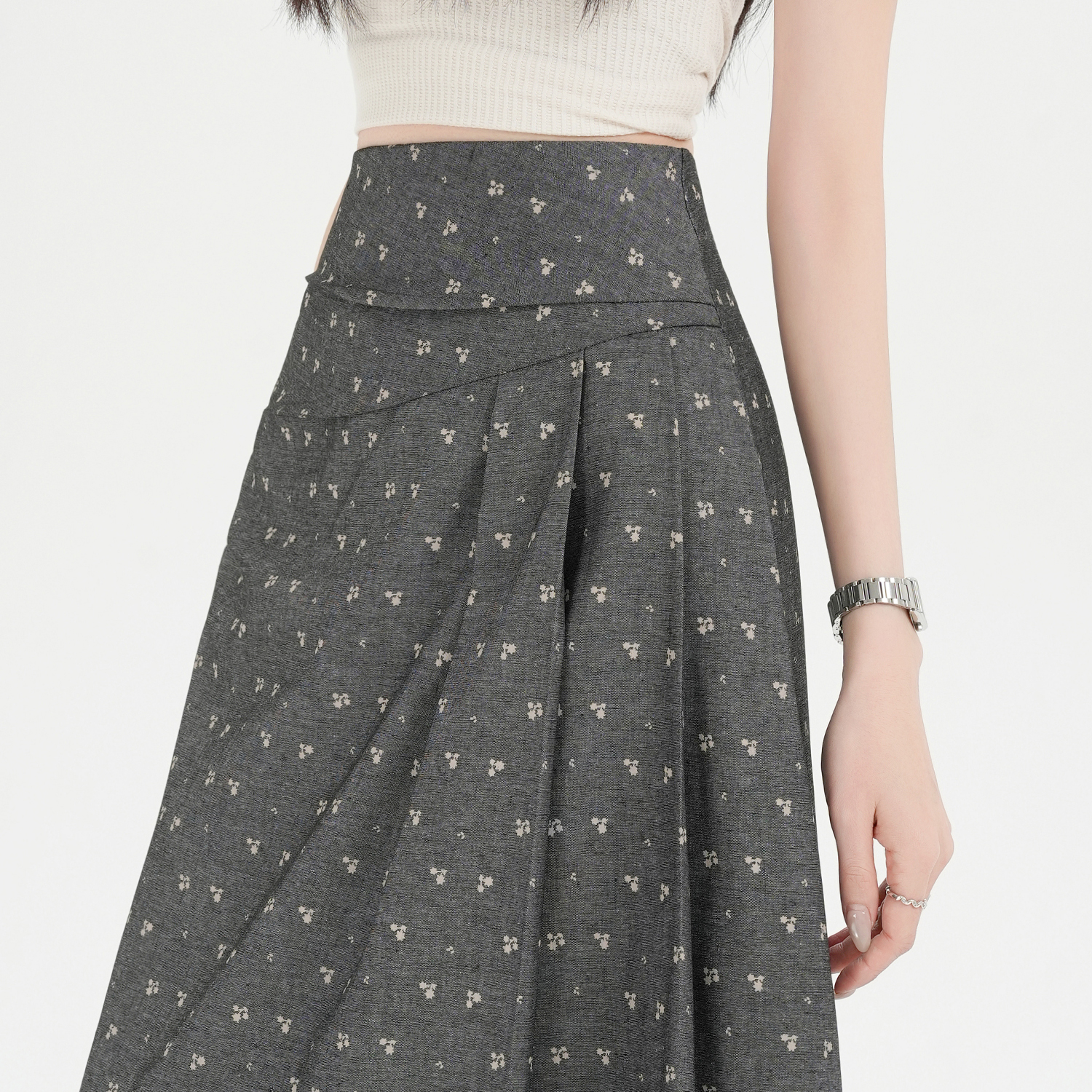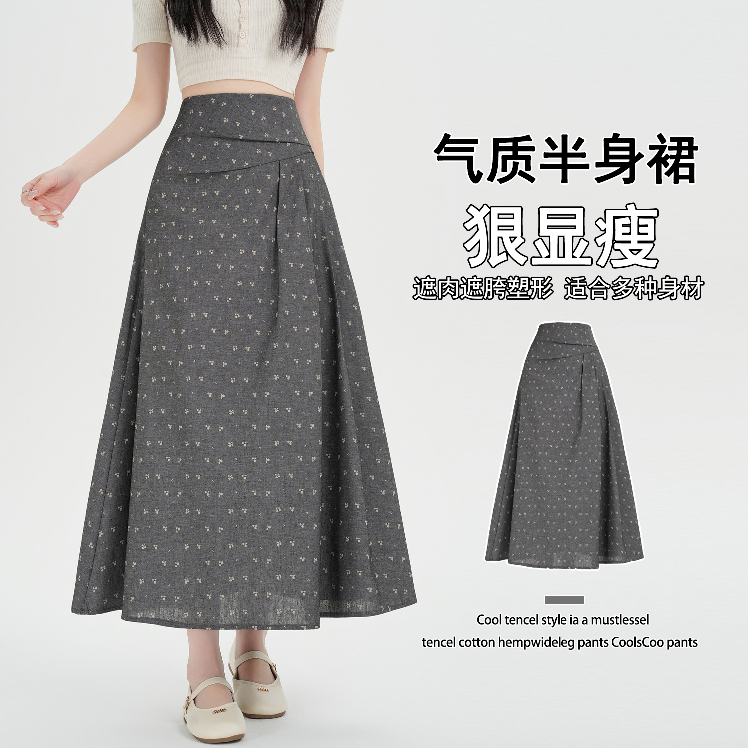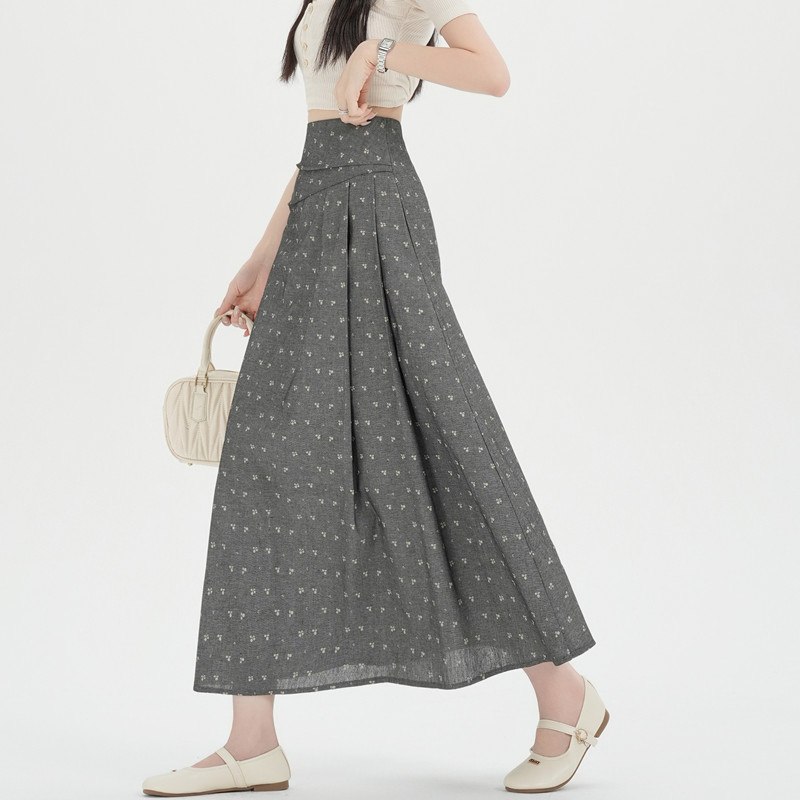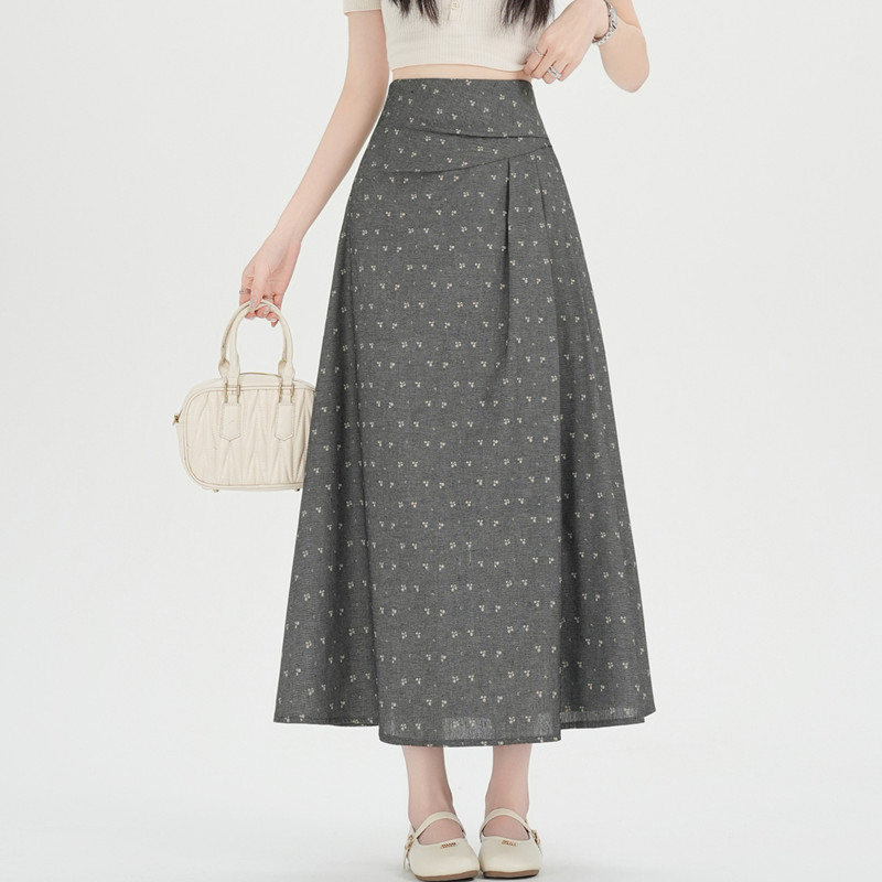 BY13761# 大码胖MM碎花半身裙春夏复古褶长裙高腰显瘦大摆A字裙 服裝批發女裝批發服飾貨源
