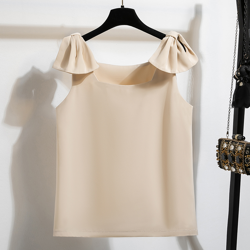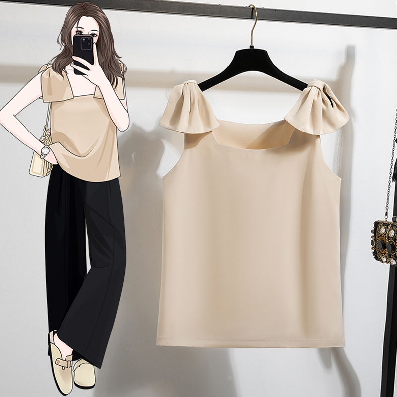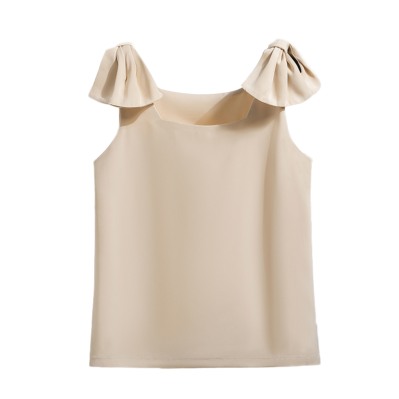 BY15123# 法式高级感轻奢减龄洋气宽松设计感小众白色蝴蝶结无袖上衣夏 服裝批發女裝批發服飾貨源