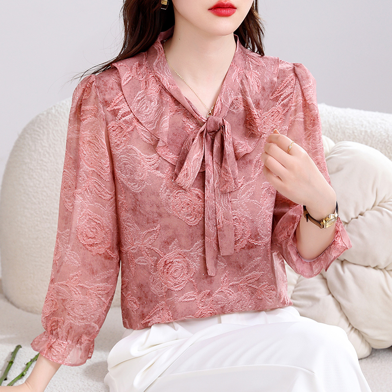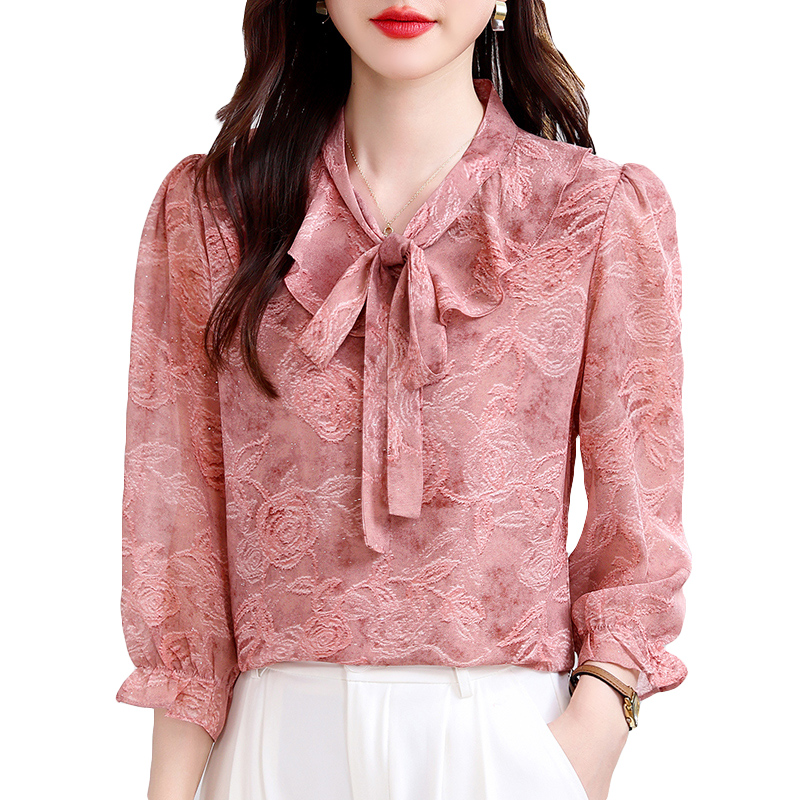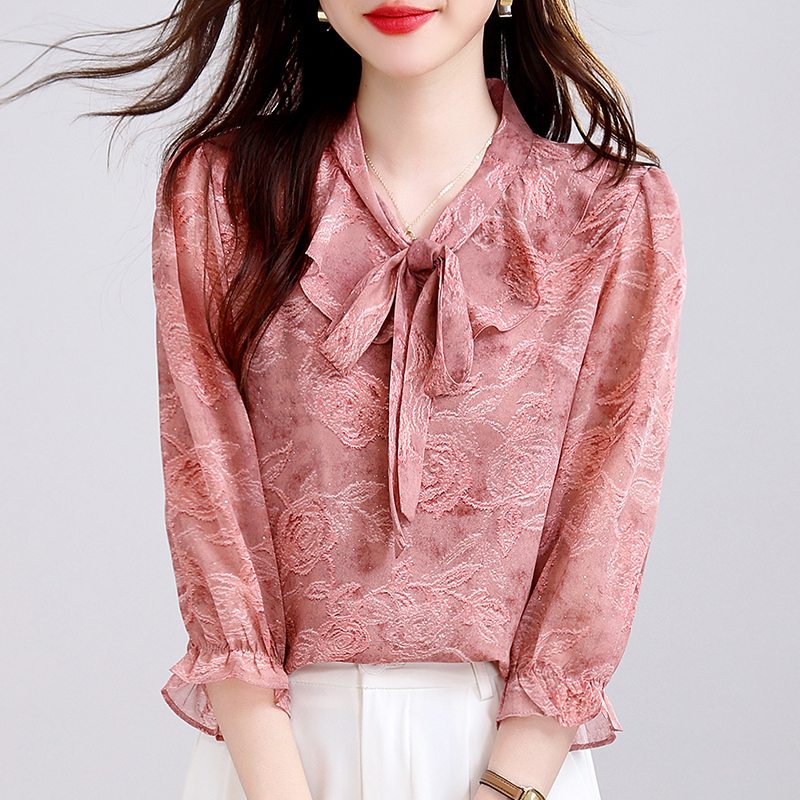 BY15125# 新款夏季七分袖V领高端小衫气质套头衬衫时髦上衣打底女 服裝批發女裝批發服飾貨源