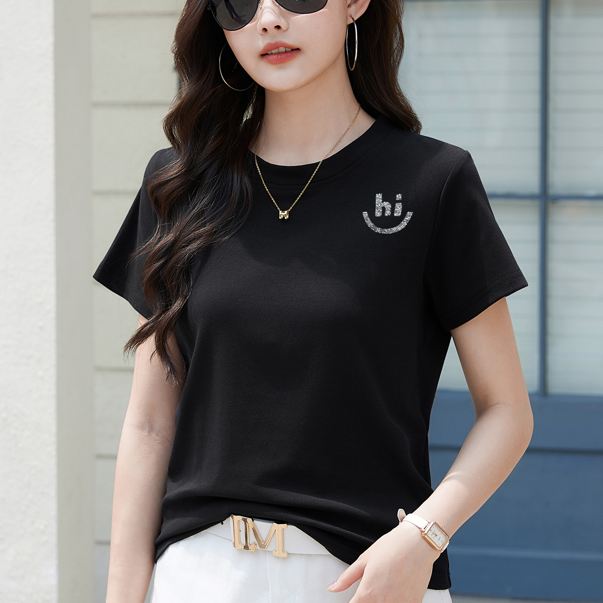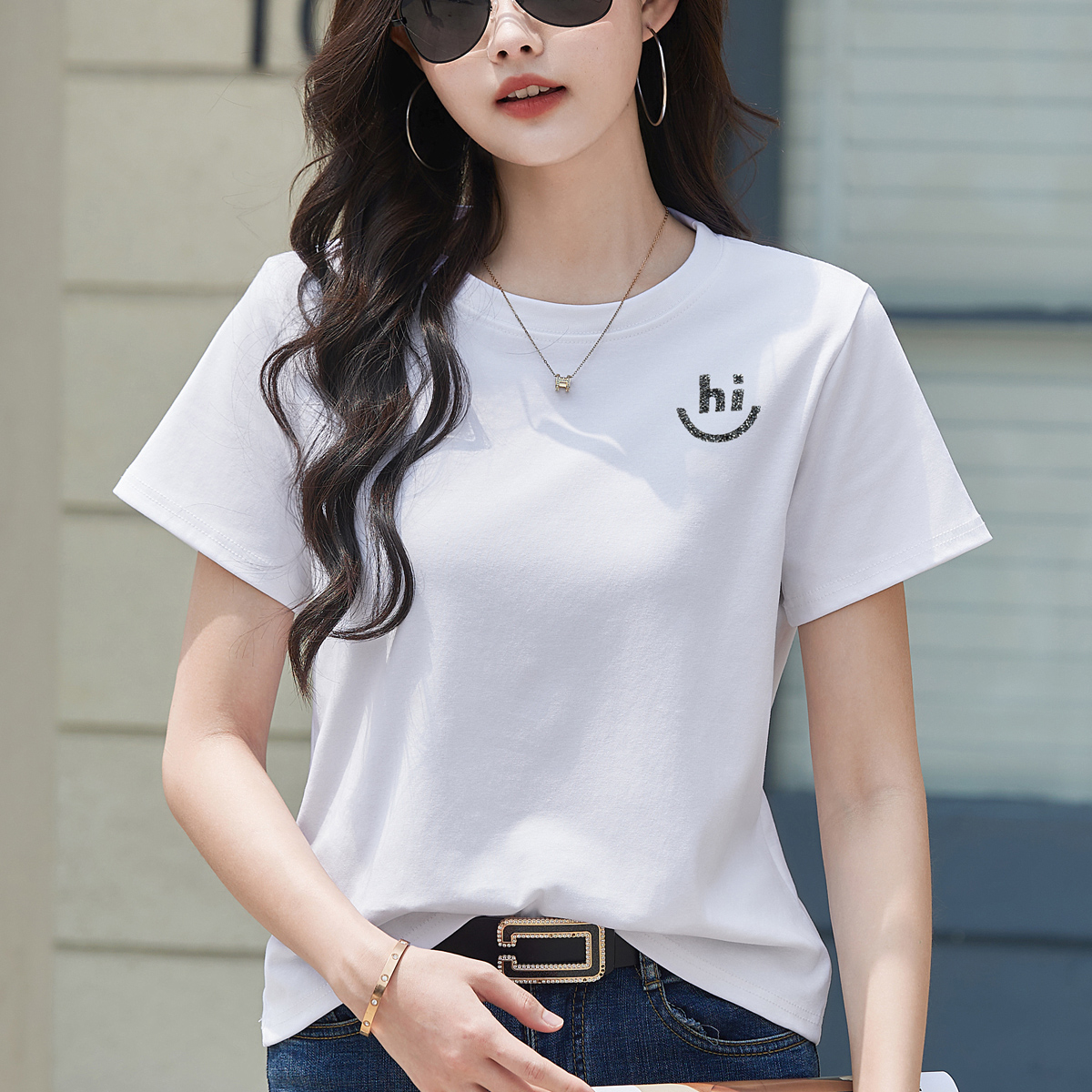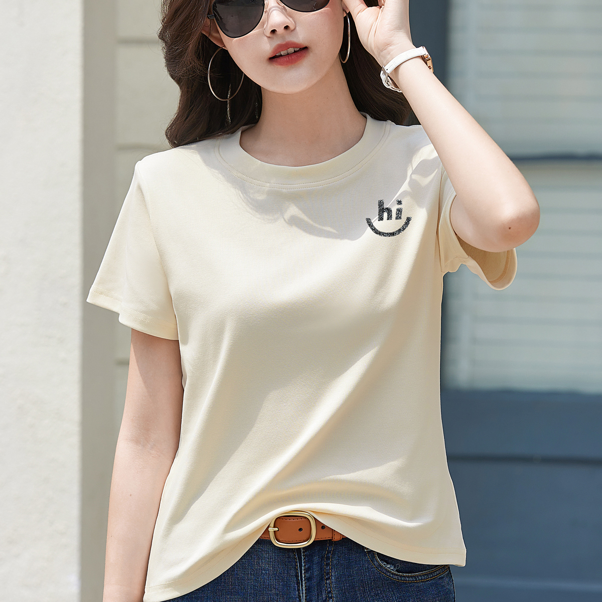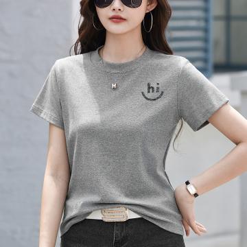 BY15155# 正肩短袖T恤女夏季新款高级感宽松简约圆领春季上衣大码女装 服裝批發女裝批發服飾貨源