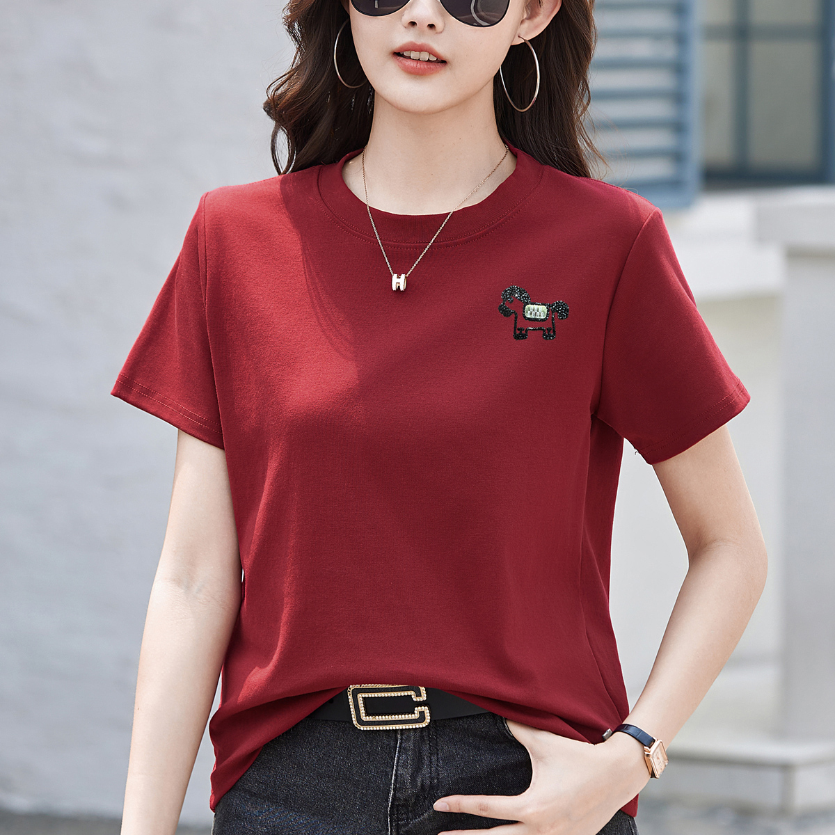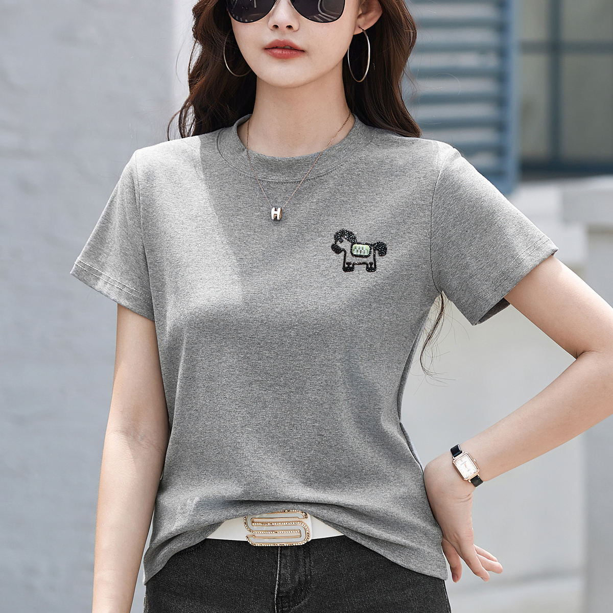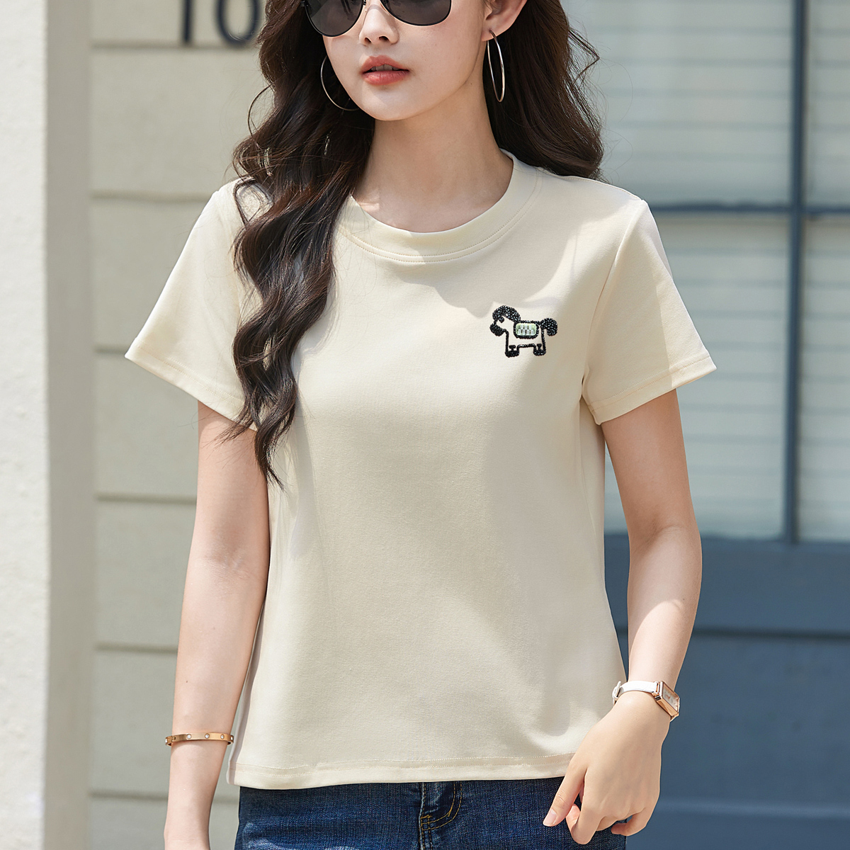 BY15159# 夏季新款正肩短袖T恤女纯色百搭宽松圆领简约半袖打底上衣潮 服裝批發女裝批發服飾貨源