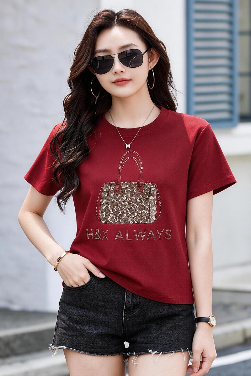 BY15160# 美式复古正肩短袖t恤女夏季宽松大码遮肉春秋内搭打底衫半袖上衣 服裝批發女裝批發服飾貨源