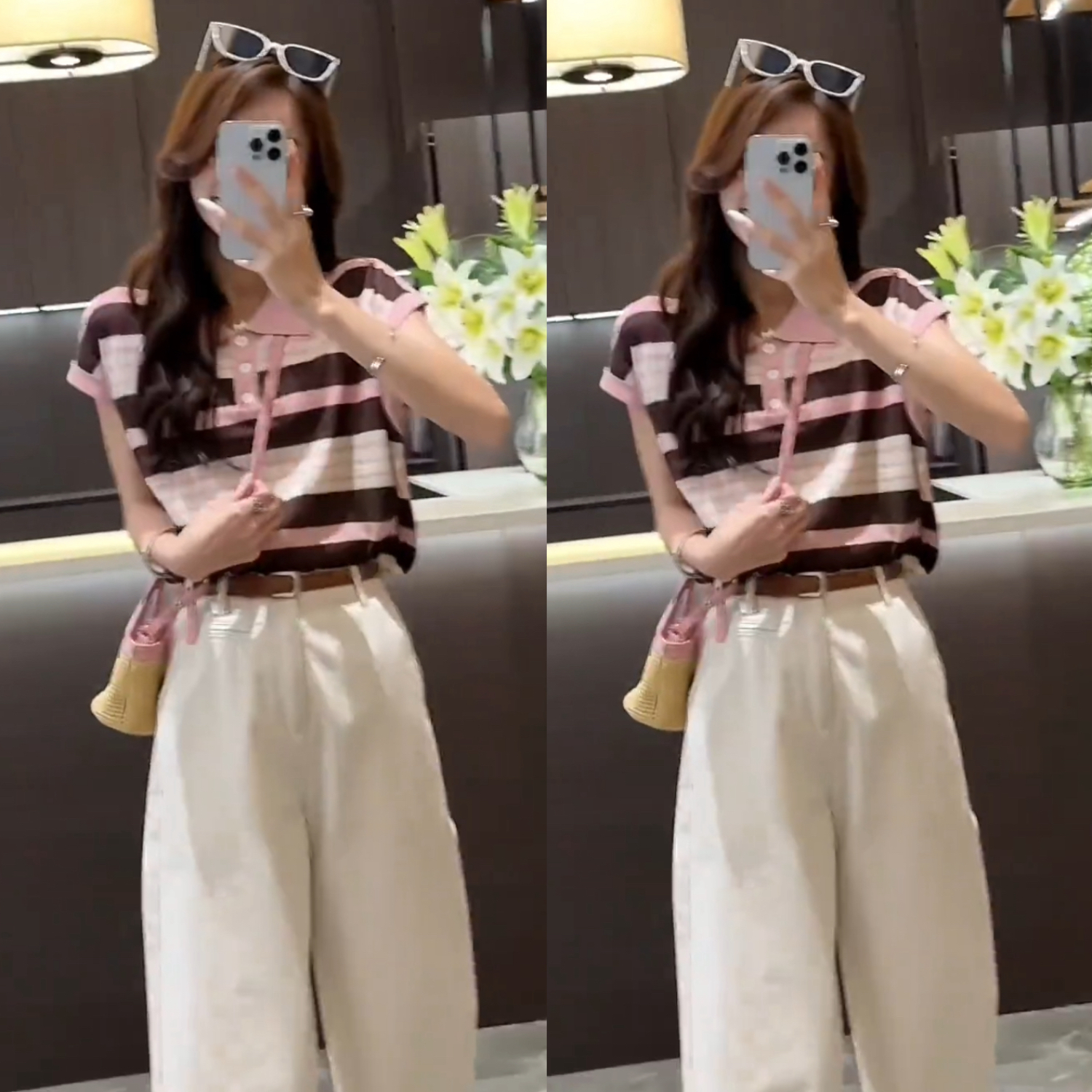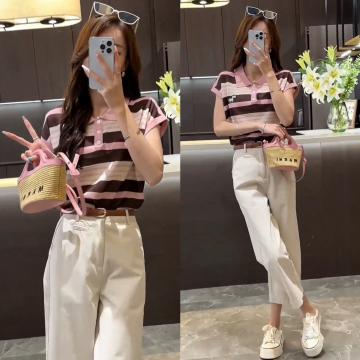 Home > 韩版套装 > BY17077# 夏季新款气质撞色条纹正肩短袖t恤+纯色宽松简约9分裤休闲裤 服裝批發女裝批發服飾貨源