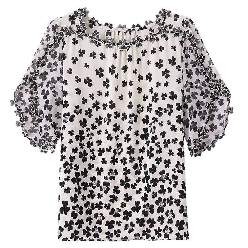 Home > 短袖雪纺衫、衬衫、上衣 > BY17367# 飞飞袖刺绣碎花衬衫女夏新款洋气时尚雪纺短袖上衣
