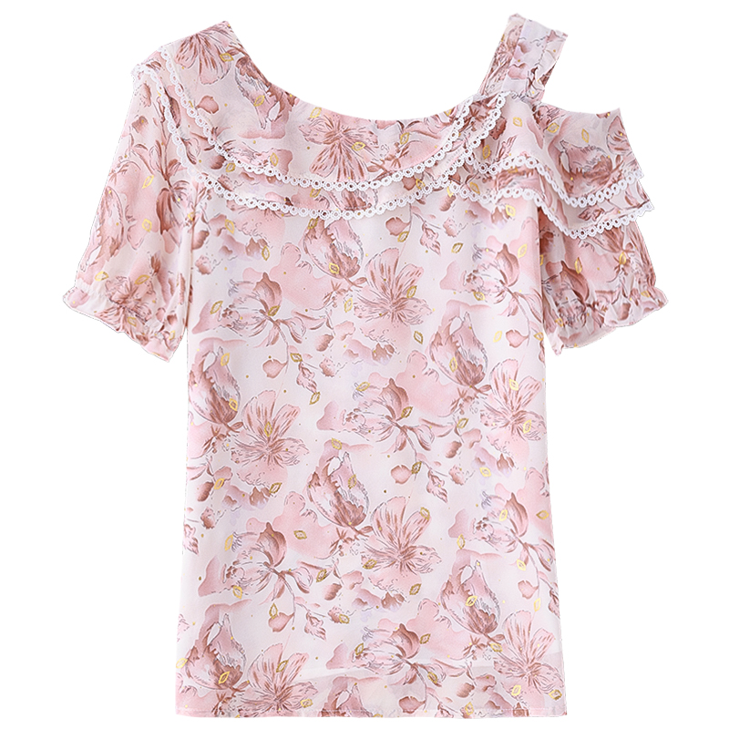 BY17370# 雪纺衫女短袖上衣夏季新款时尚漂亮洋气小衫遮肚子
