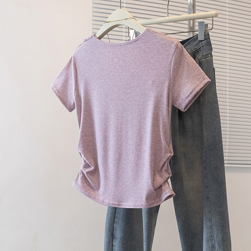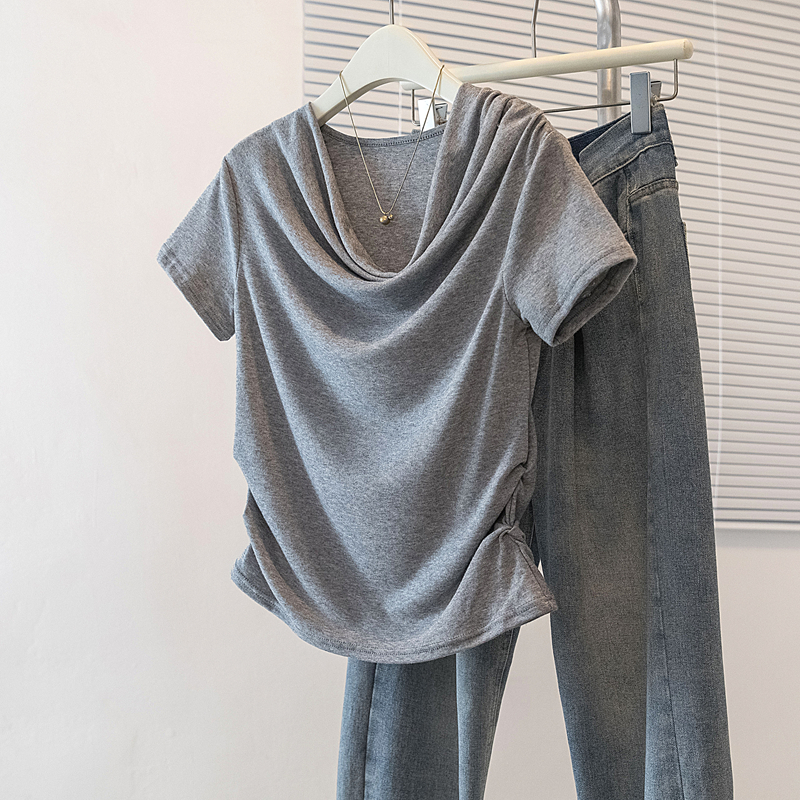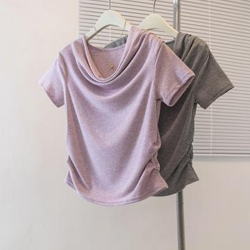 BY17599# 大码夏季短袖T恤不规则时尚荡领气质甜美修身显瘦上衣 服裝批發女裝批發服飾貨源