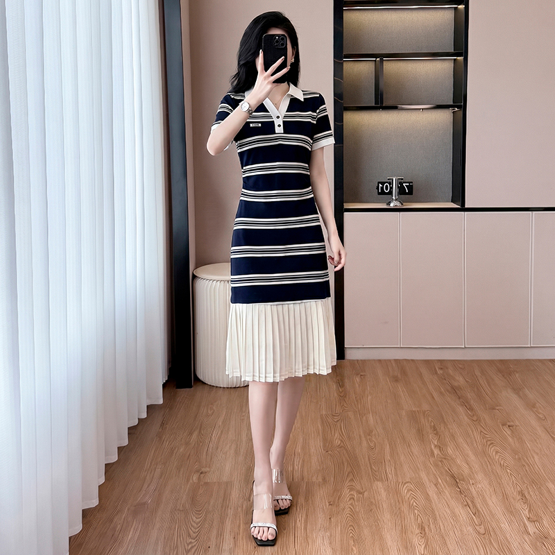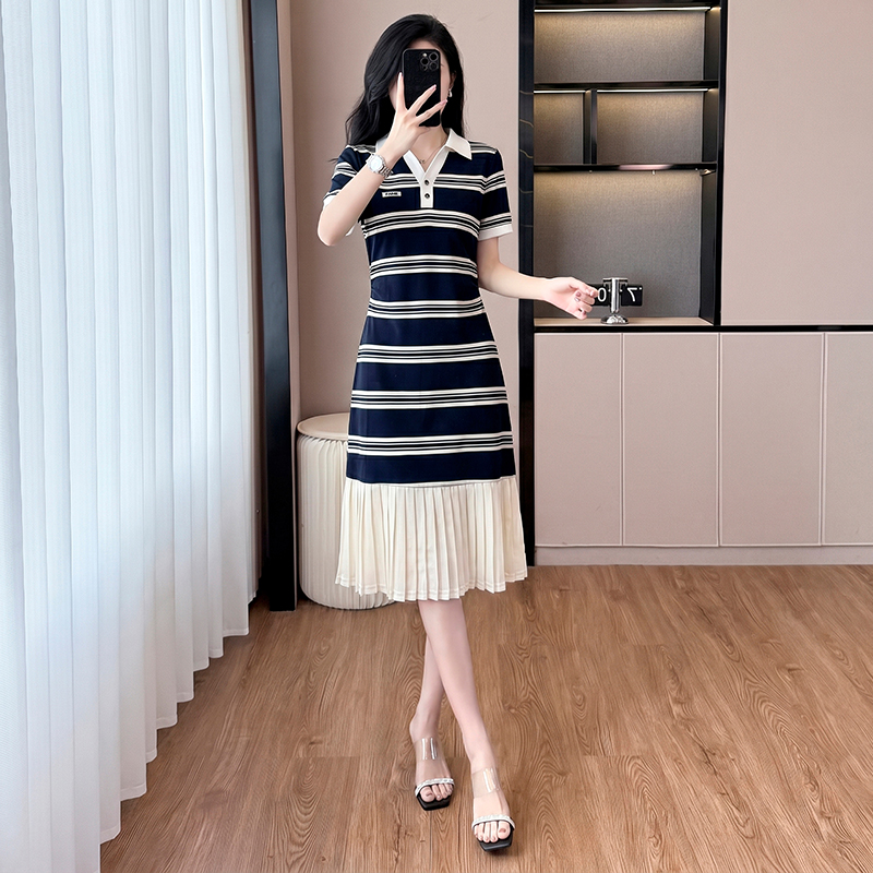 BY18672# 条纹连衣裙女夏季新款宽松百搭减龄休闲时尚假两件裙子 服裝批發女裝批發服飾貨源