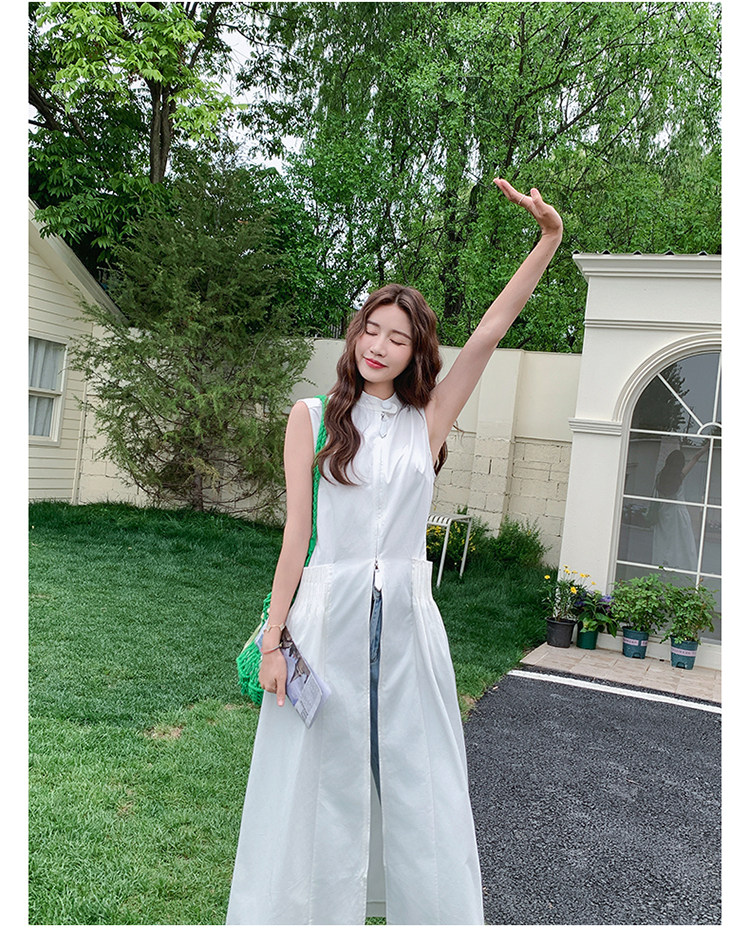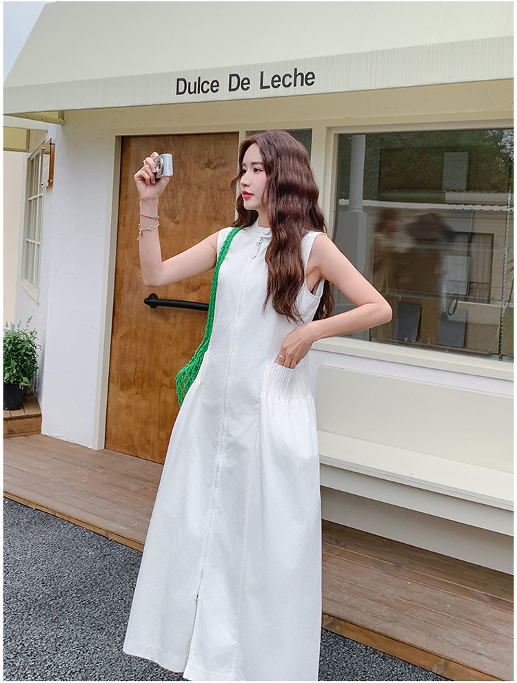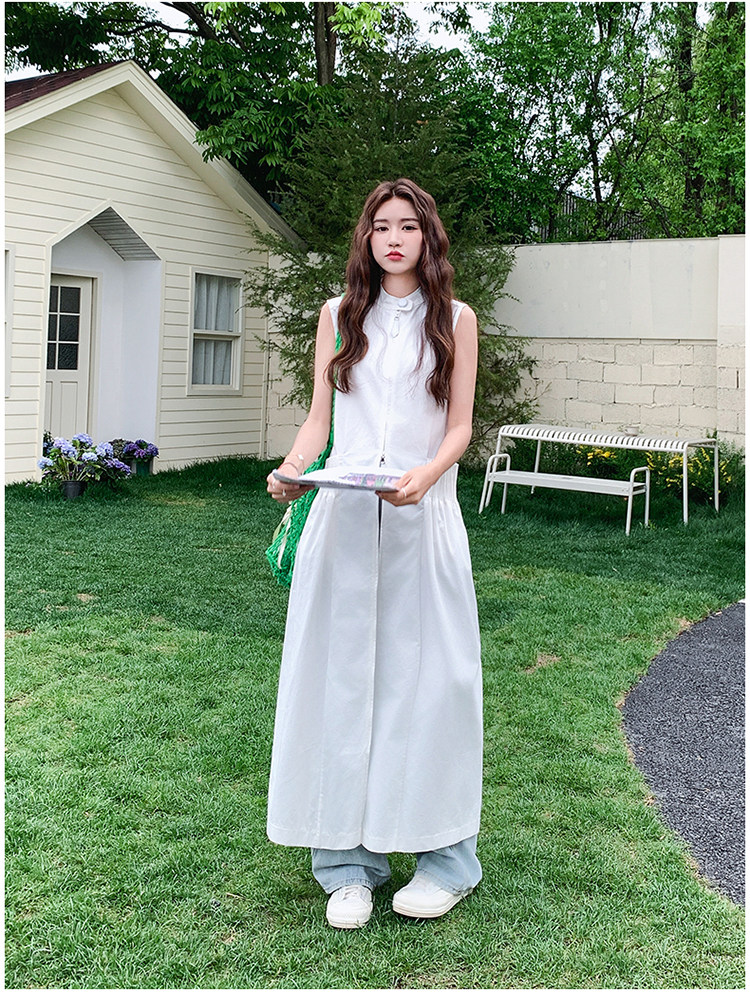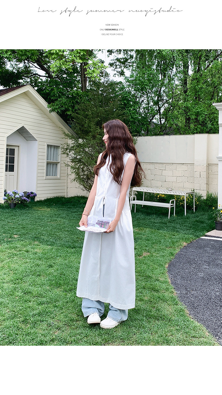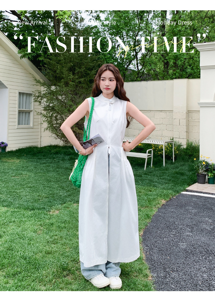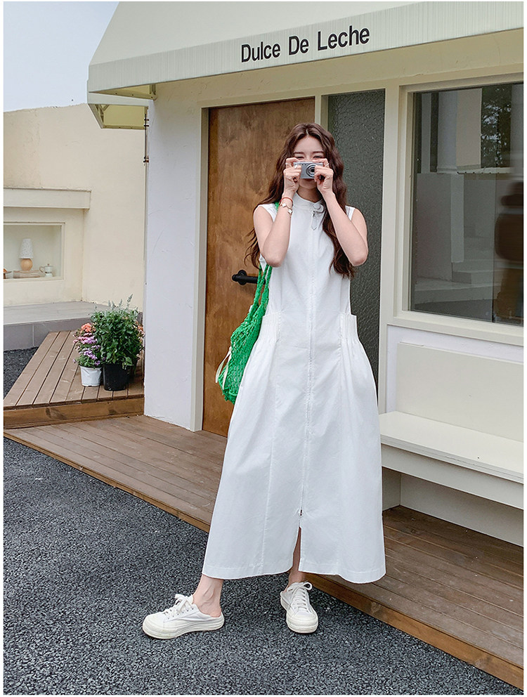 LN76433# 白色拉链立领无袖连衣裙新款女初夏又A又飒气质显瘦罩衫裙子