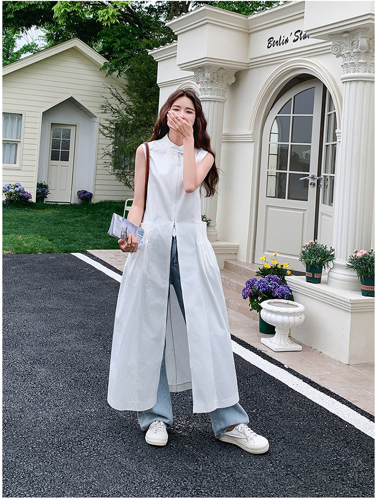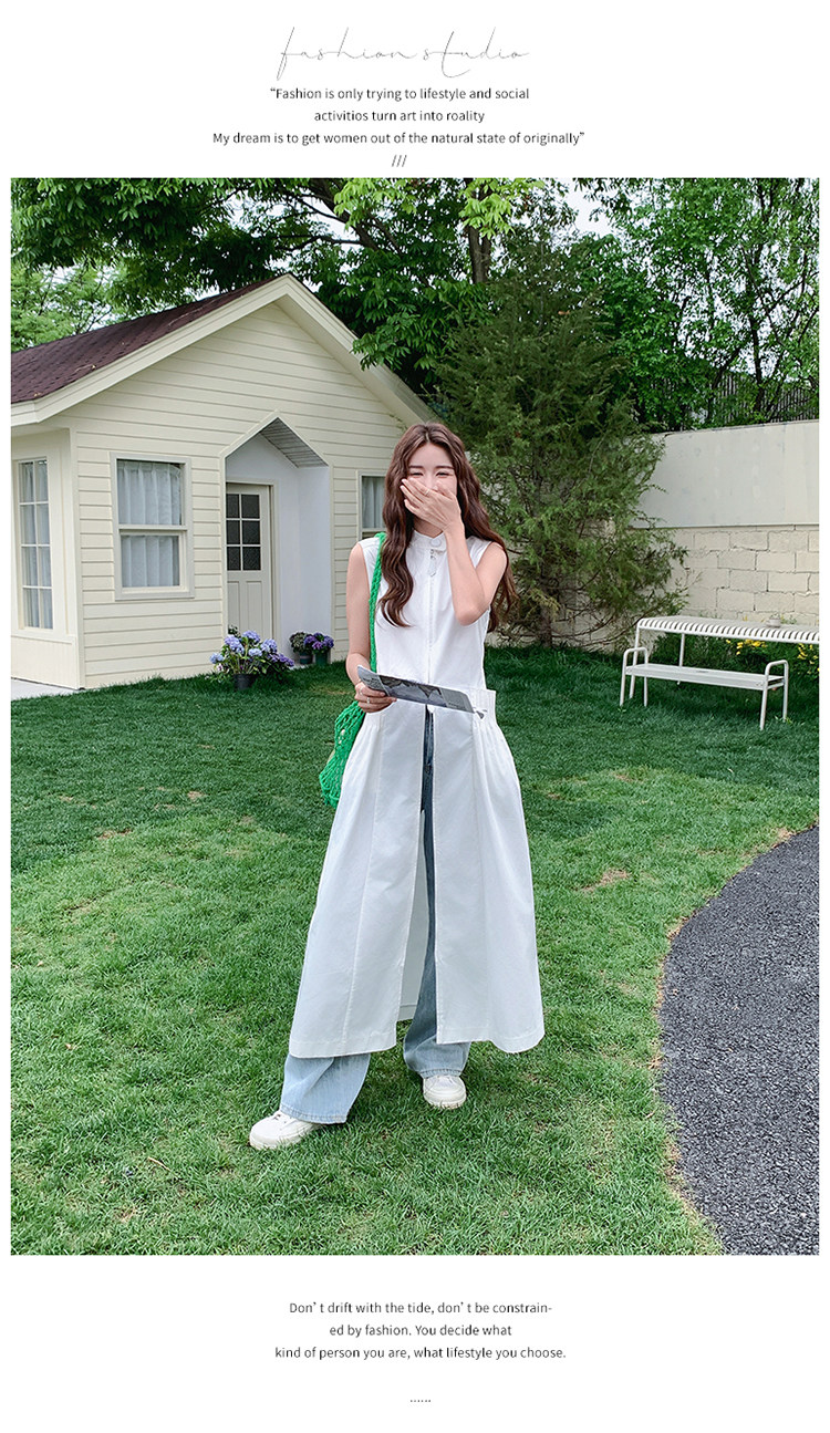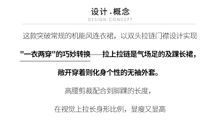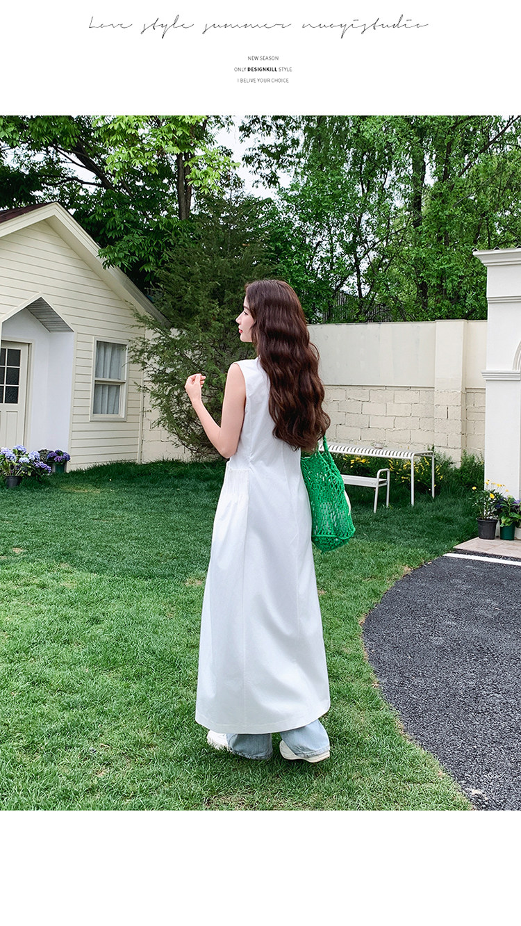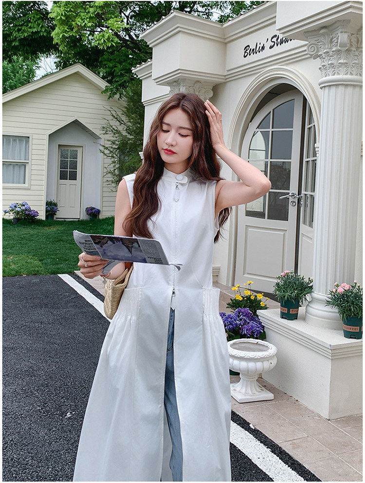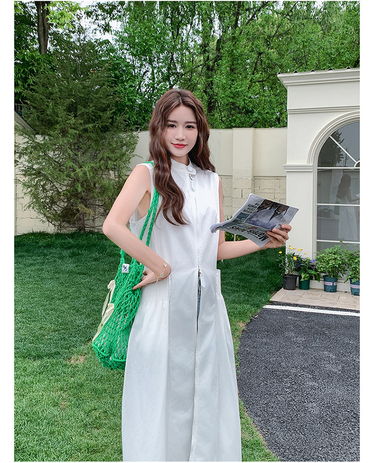 LN76433# 白色拉链立领无袖连衣裙新款女初夏又A又飒气质显瘦罩衫裙子