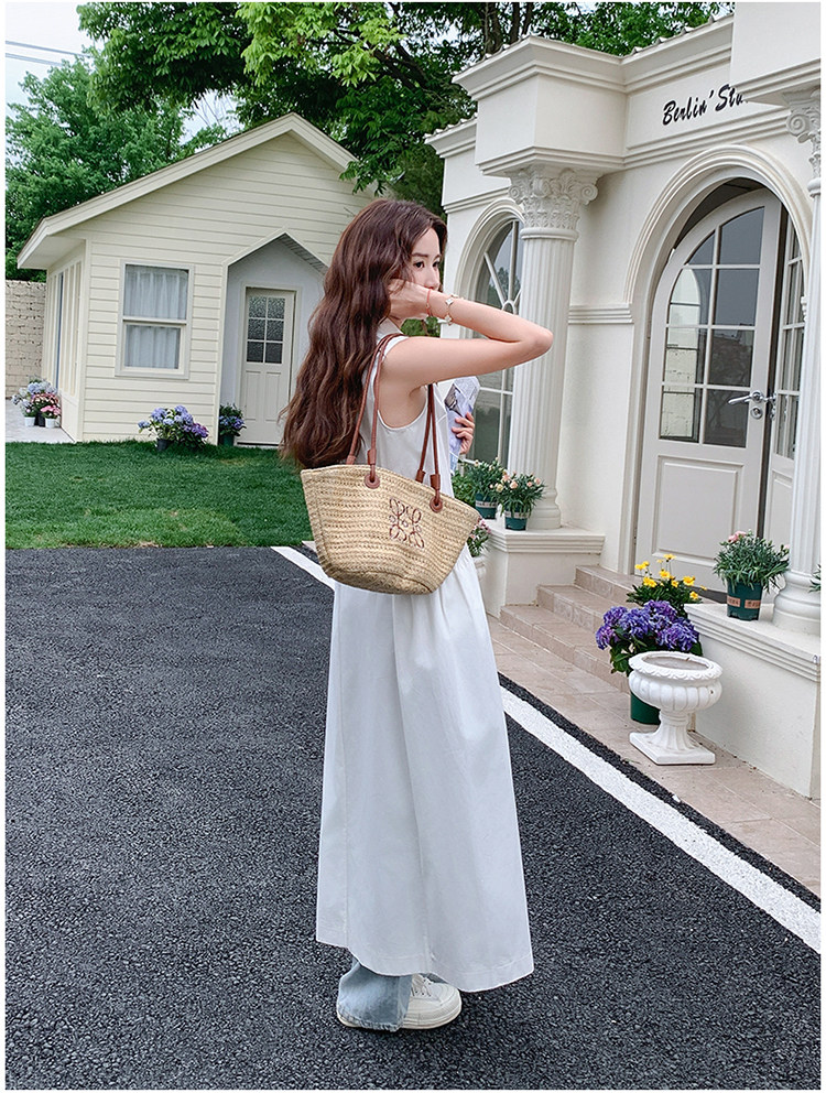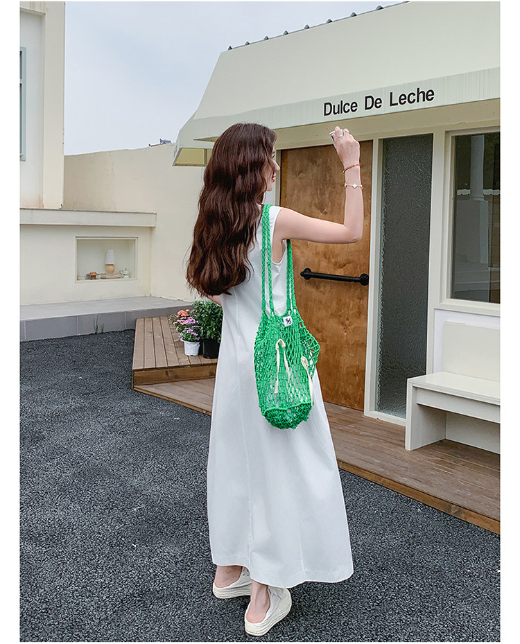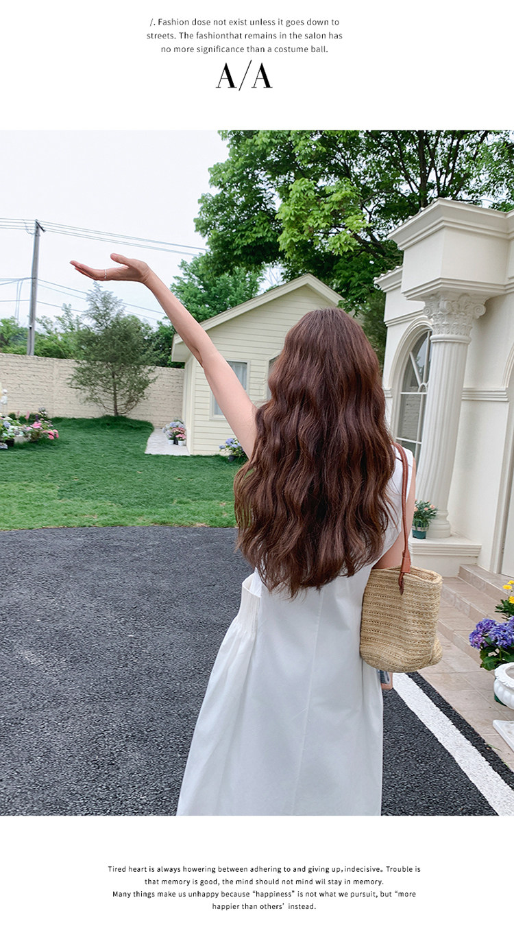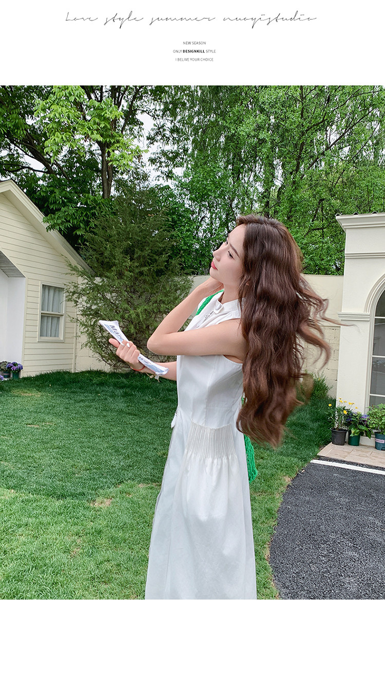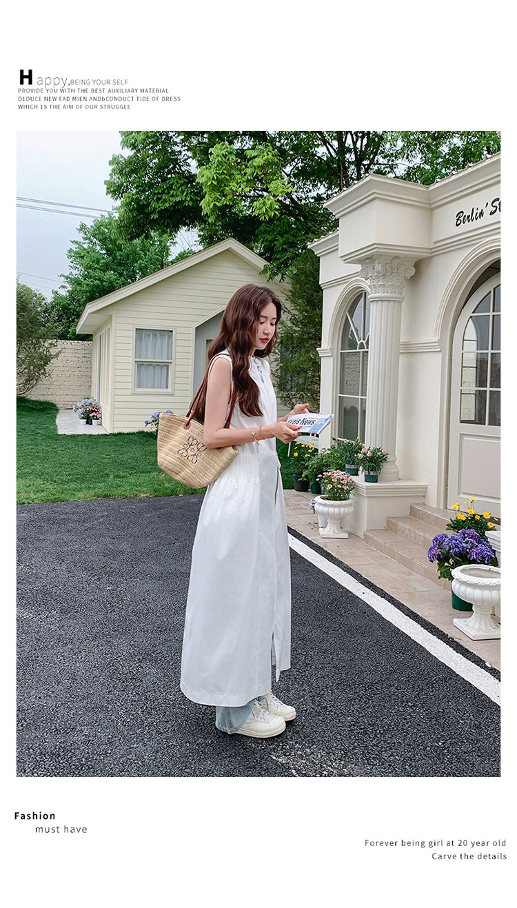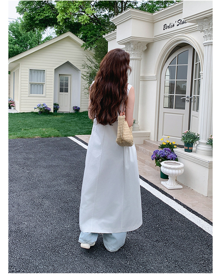 LN76433# 白色拉链立领无袖连衣裙新款女初夏又A又飒气质显瘦罩衫裙子