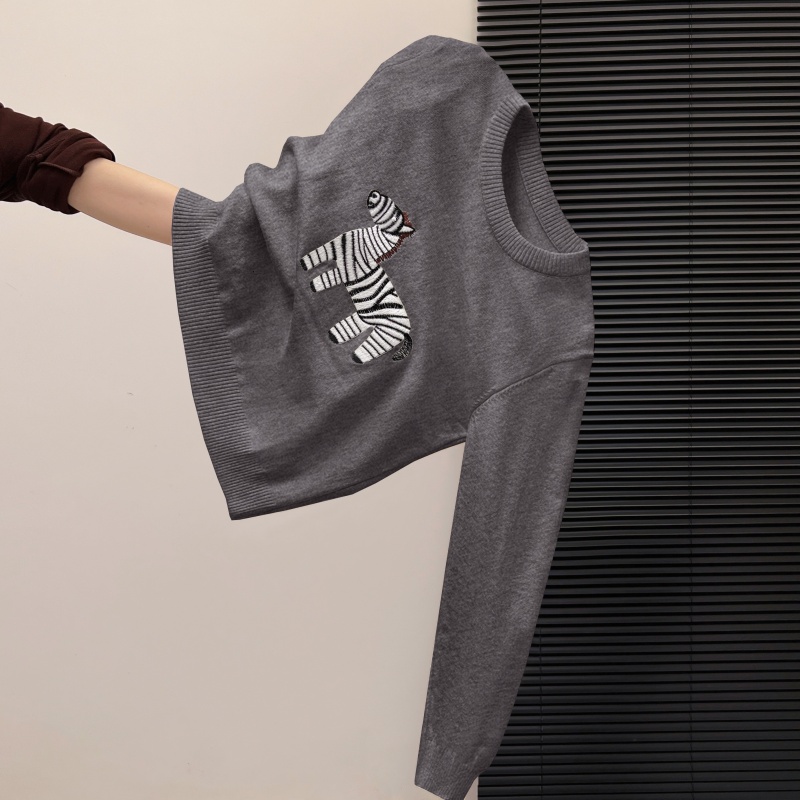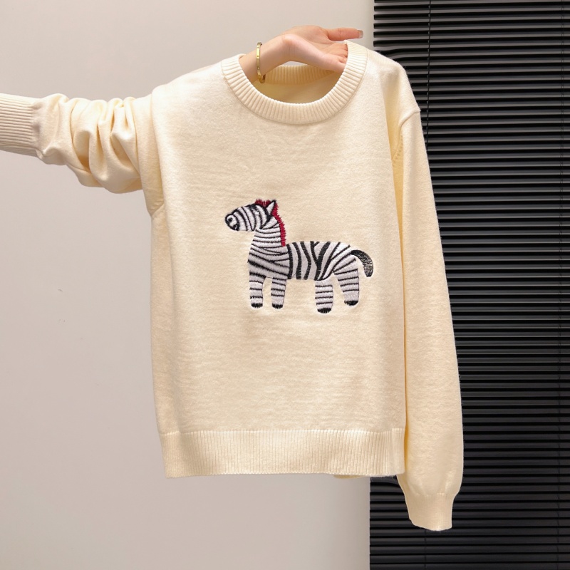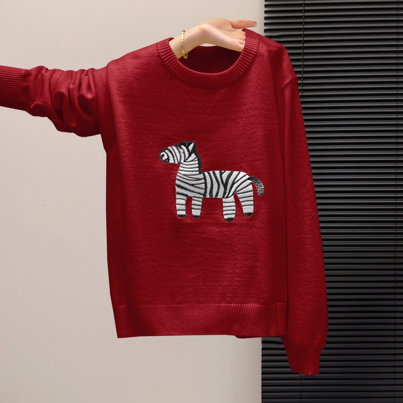 FA55154# 新款秋冬小马斑斑卡通刺绣针织女新年红毛衣宽松韩系减龄 服裝批發女裝批發服飾貨源