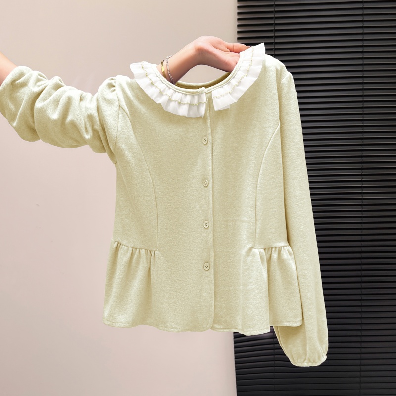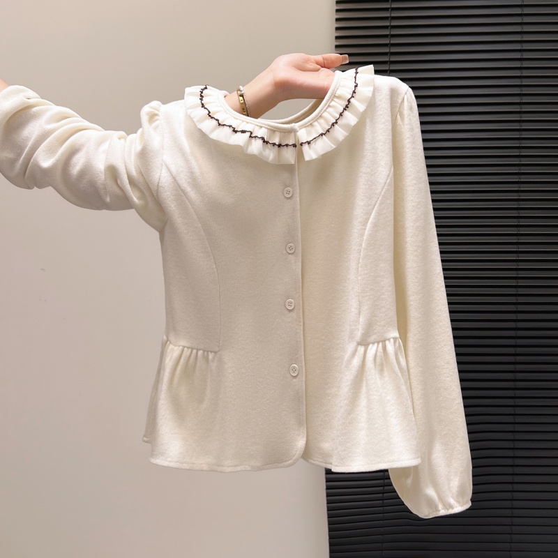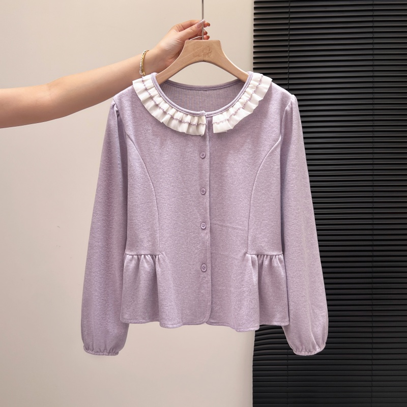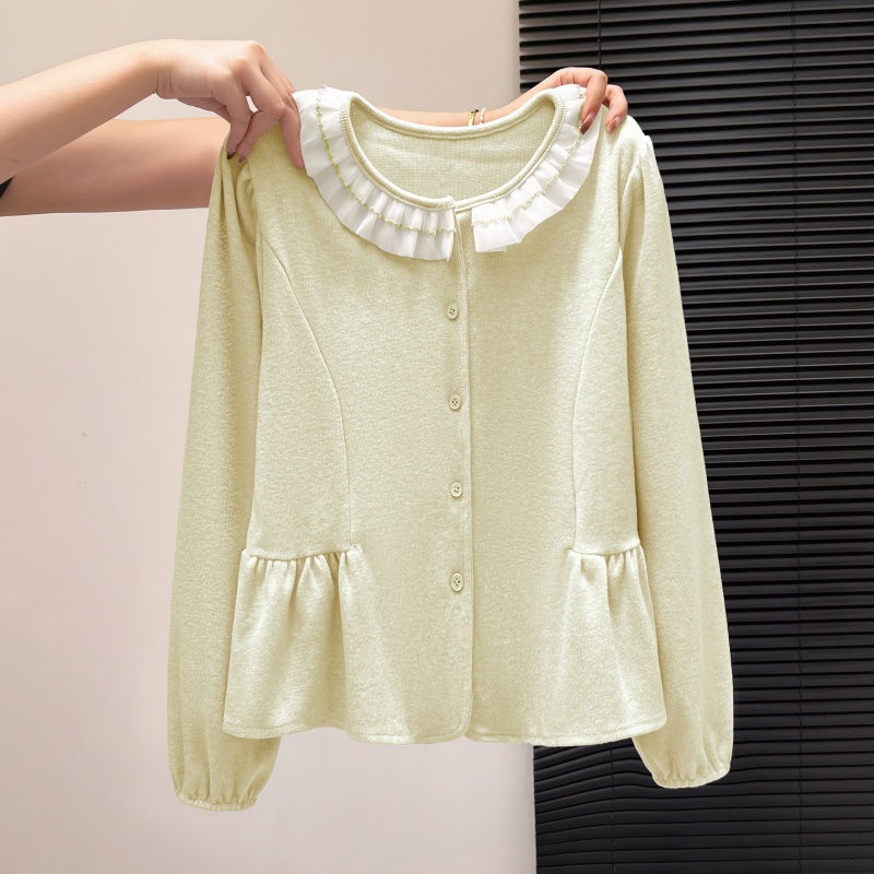 FA55155# 拼接花边圆领针织衫女冬季新款荷叶边内搭打底衫外穿上衣 服裝批發女裝批發服飾貨源