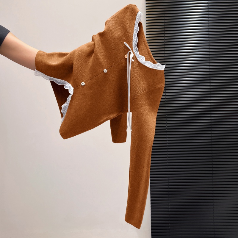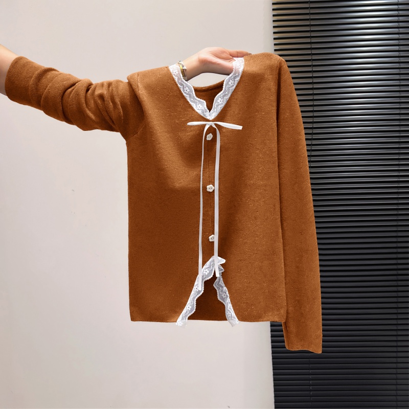 首页 > 毛衣、针织衫 > FA55164# 韩系甜美橘色V领蕾丝针织衫女秋冬新款气质减龄显白小众上衣 服裝批發女裝批發服飾貨源