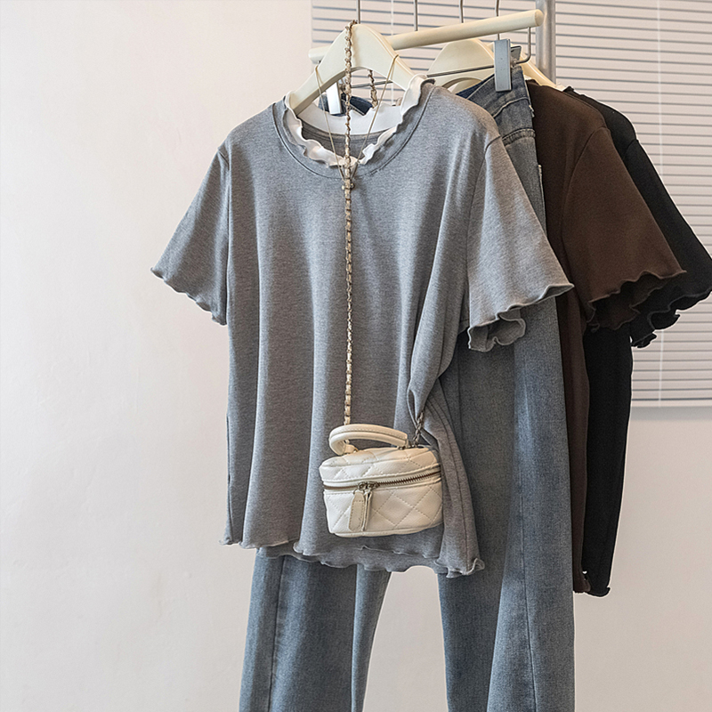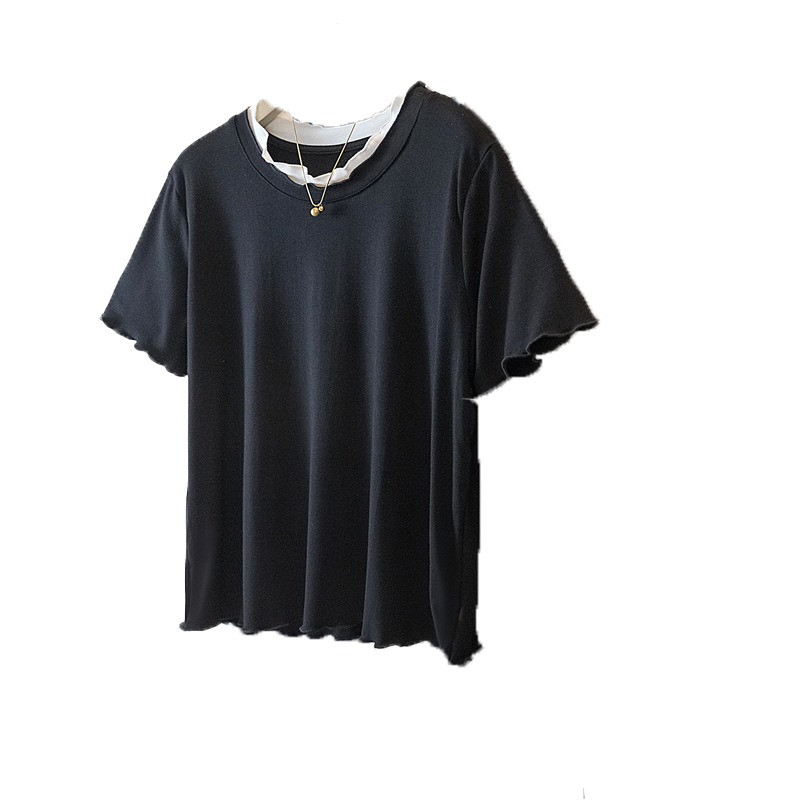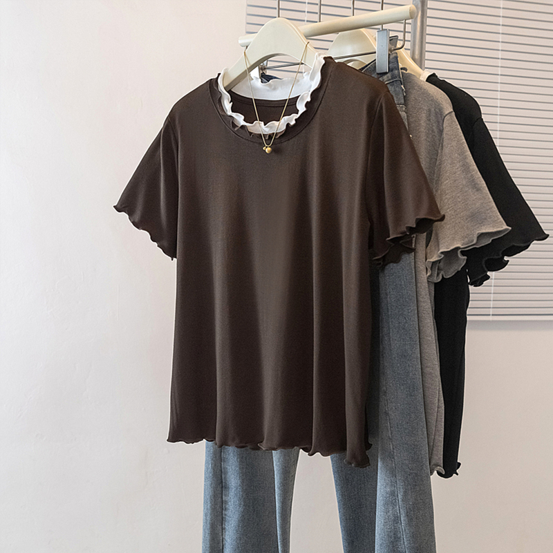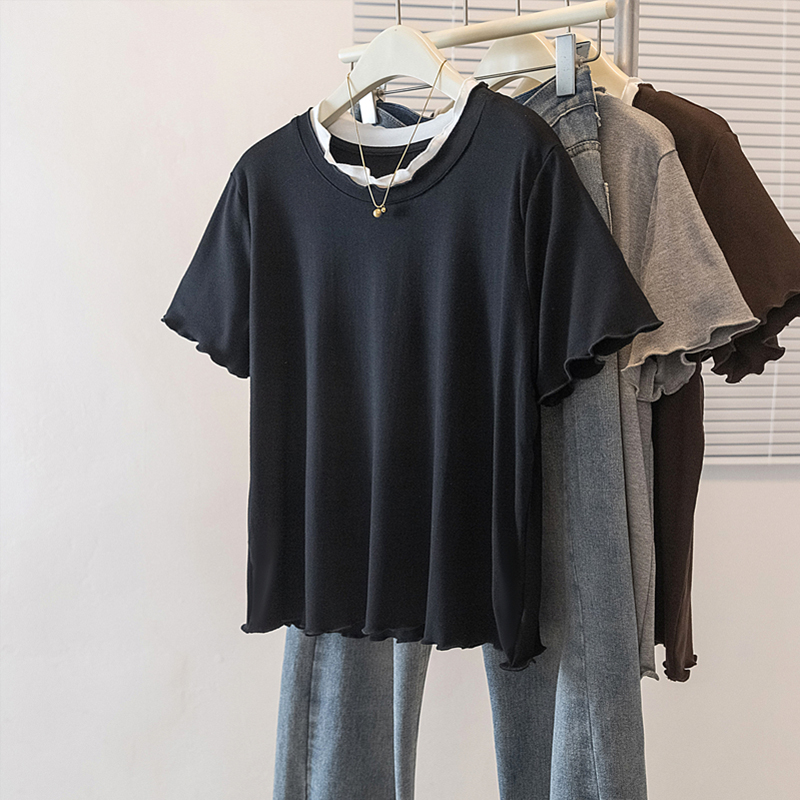 FA55530# 大码女装春季新款韩版高级感潮流下摆木耳边设计显瘦修身上衣 服裝批發女裝批發服飾貨源
