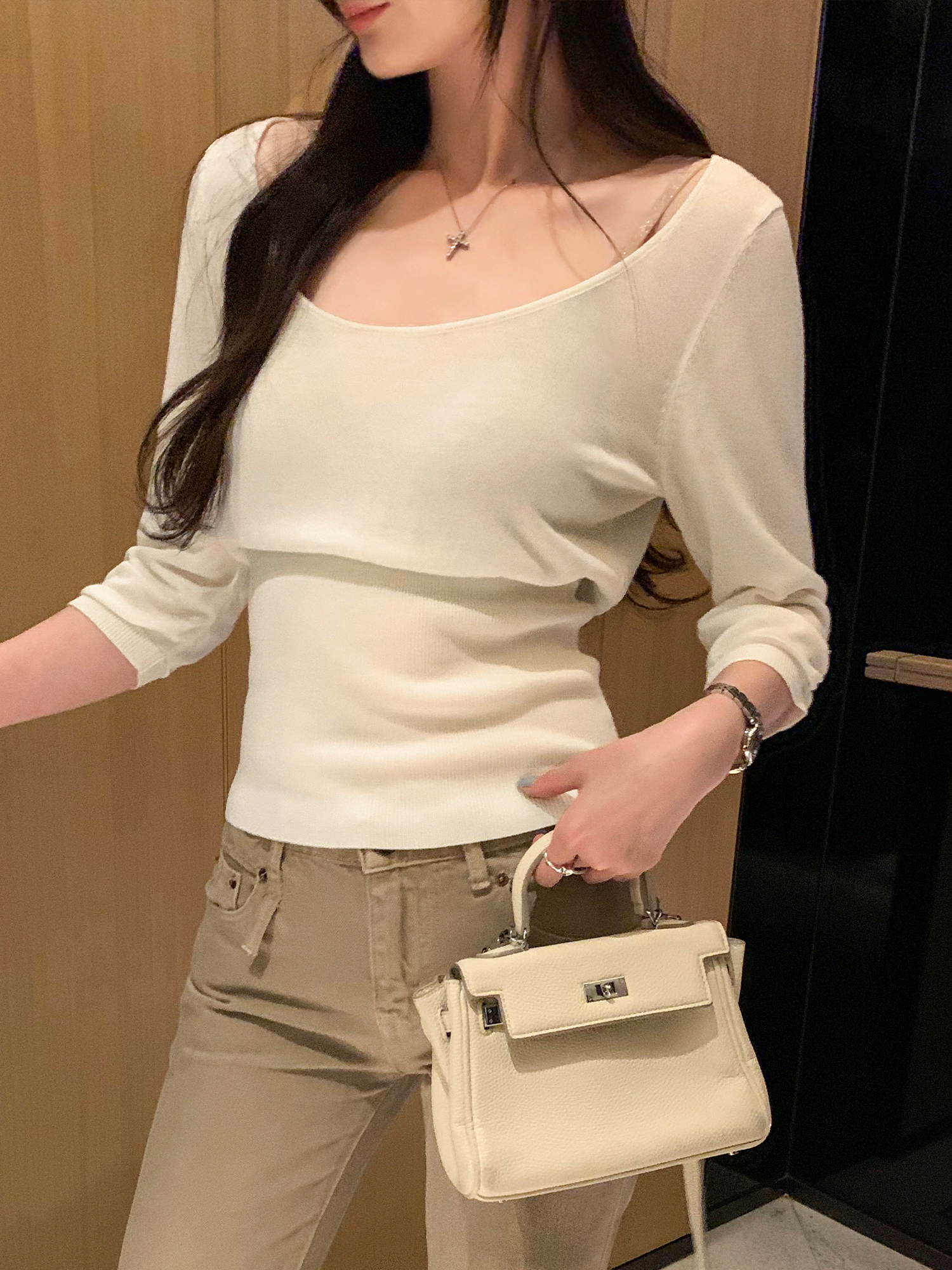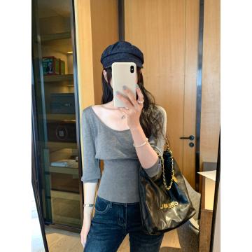 BY10302# 莱赛尔天丝收腰内搭打底衫五分袖针织衫女早春新款上衣 服裝批發女裝批發服飾貨源