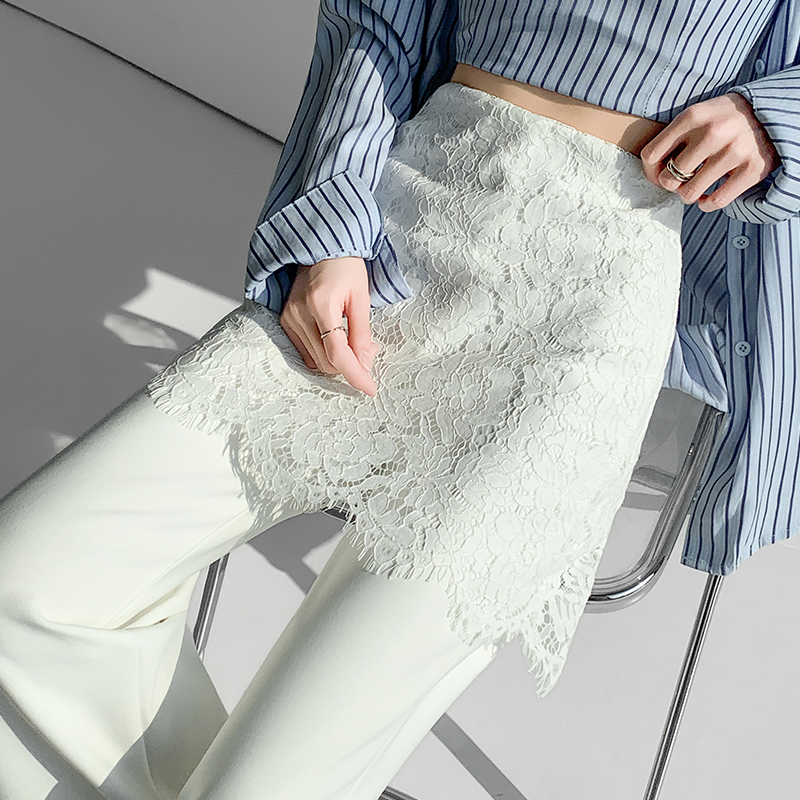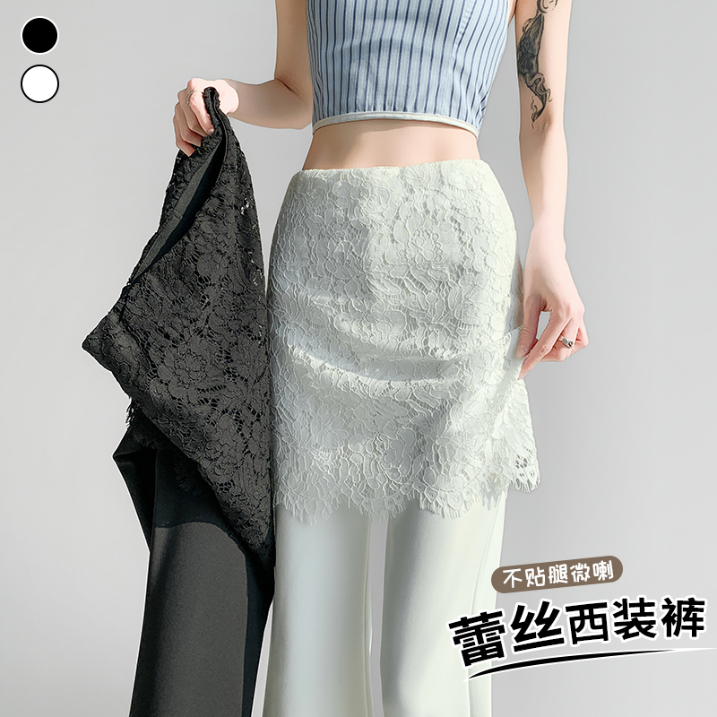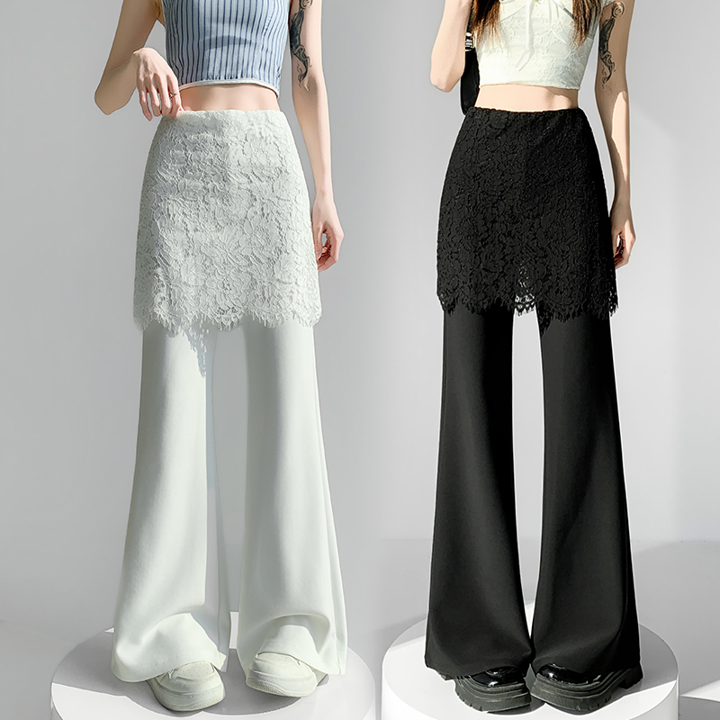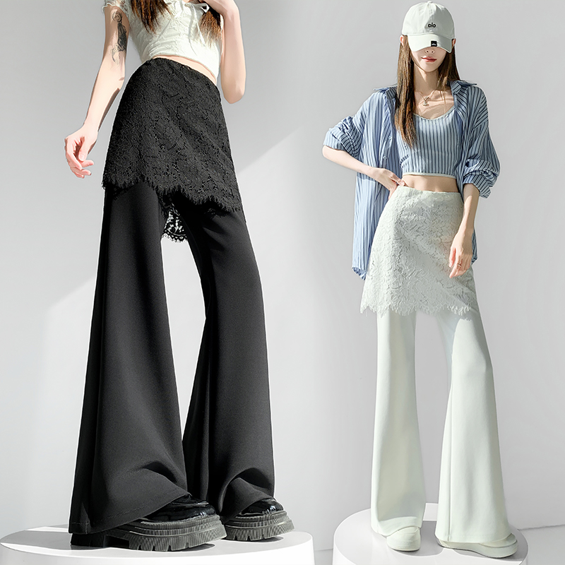 首页 > 牛仔裤、长裤 > BY10562# 蕾丝假两件屁帘微喇裤女春夏高腰显瘦休闲裤垂感拖地长裤 服裝批發女裝批發服飾貨源